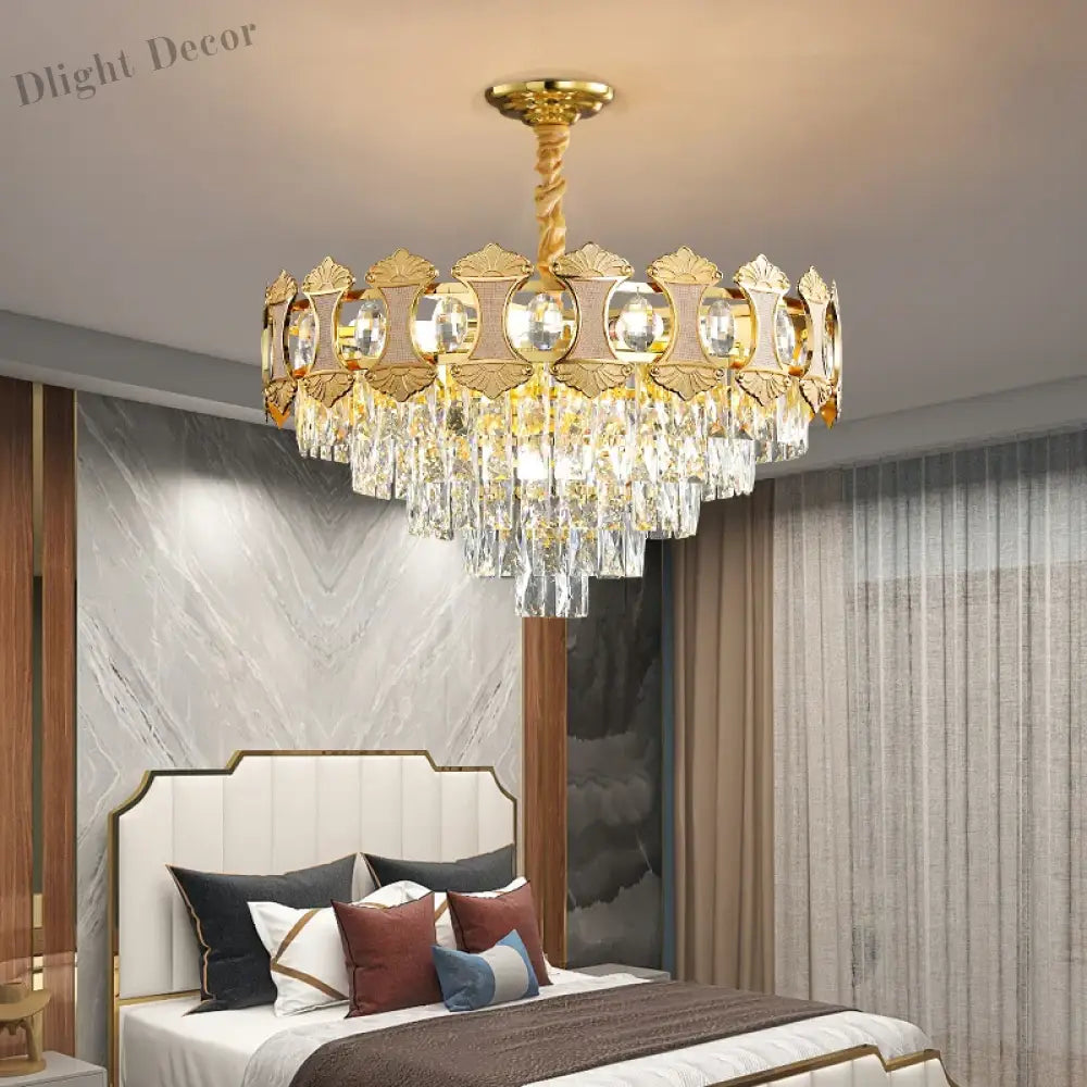 Elegant Golden Crystal Chandelier - Perfect for Master Bedrooms, Living Rooms, and Dining Rooms, Creating an Atmosphere of Simplicity and Light Luxury
