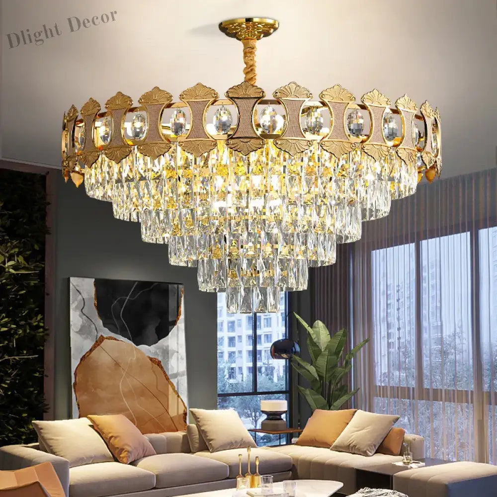 Elevate the ambiance of your master bedroom, living room, or dining room with our exquisite Golden Crystal Chandelier. This chandelier seamlessly blends the opulence of crystal with an atmosphere of simplicity and light luxury, creating a captivating lighting fixture that adds a touch of elegance to your decor.