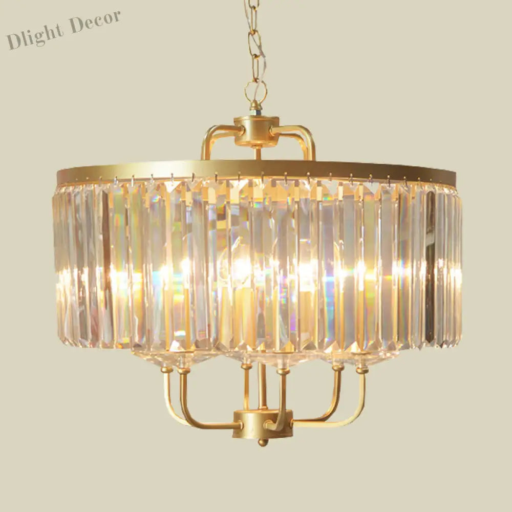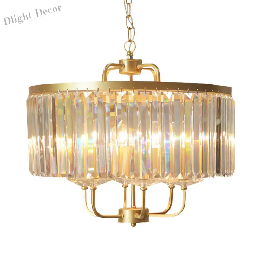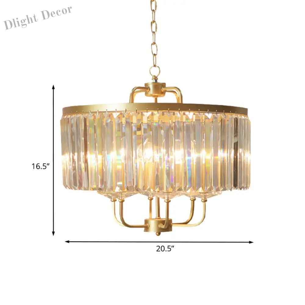 Immerse your space in a captivating display of light with Aurora's exquisite Contemporary Gold Chandelier. This modern masterpiece features a stunning drum-shaped shade adorned with sparkling crystals, housed within a sleek gold frame, creating a timeless and elegant focal point for any room.
