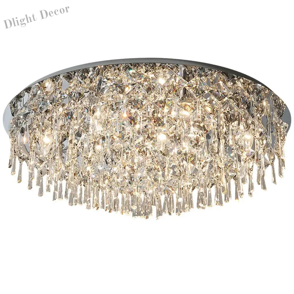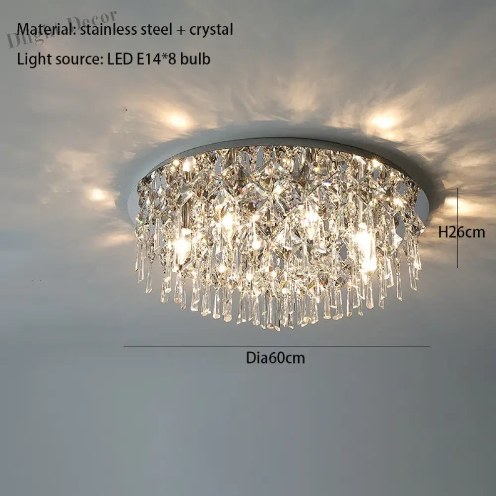 Luxury Modern K9 Crystals Ceiling Lamp - Chrome Steel LED Ceiling Light for Art Deco Bedroom Lighting