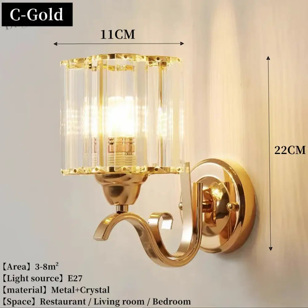 Elevate your interior decor with the Modern Luxury Gold Wall Lamp, a masterpiece of contemporary design and sophistication. This wall lamp combines the opulence of crystal with the sleekness of metal, offering an enchanting lighting solution for living rooms, hallways, bedside areas, and indoor spaces. Its LED technology ensures both energy efficiency and a warm, inviting ambiance.
