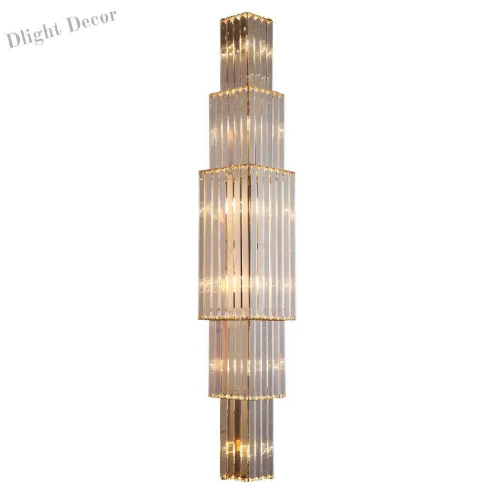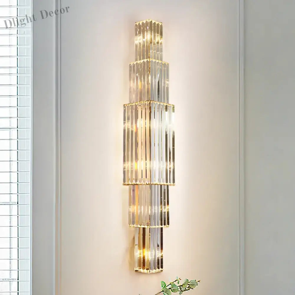 Introducing Victoria's Large Crystal Wall Light, a symbol of modern luxury and decorative lighting that elevates the ambiance of your living room, hall, bedroom, loft, indoor spaces, or even upscale hotel and villa settings. This grand wall light showcases a modern gold finish and is adorned with high-quality K9 crystal elements. It offers versatile lighting options with an LED E14 light source and includes the bulb for your convenience. The product is packaged securely for delivery with export-standard packaging.