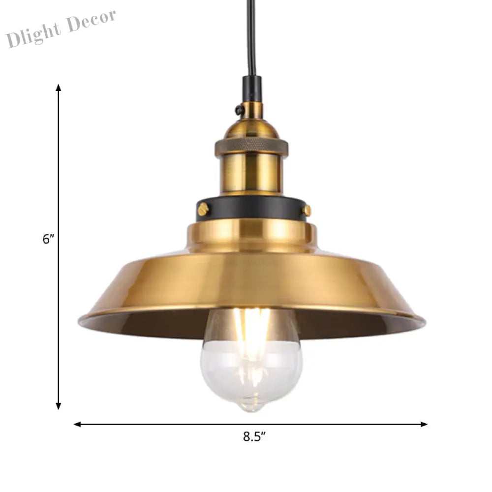 Elevate your home with the Sélène Barn Shade Metal Suspension Light, offering an industrial-inspired charm. This adjustable hanging ceiling light features a brass finish, adding a warm and inviting atmosphere to your decor.
