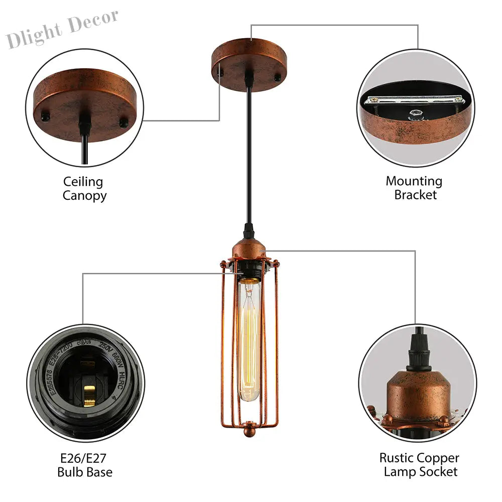 Elevate your kitchen's ambiance with Amelia's Vintage Industrial Pendant Light, a captivating piece that blends rustic charm with modern edge. This single-light fixture boasts a dark rust finish and a sleek metal shade protected by a wire guard, exuding a touch of industrial sophistication.