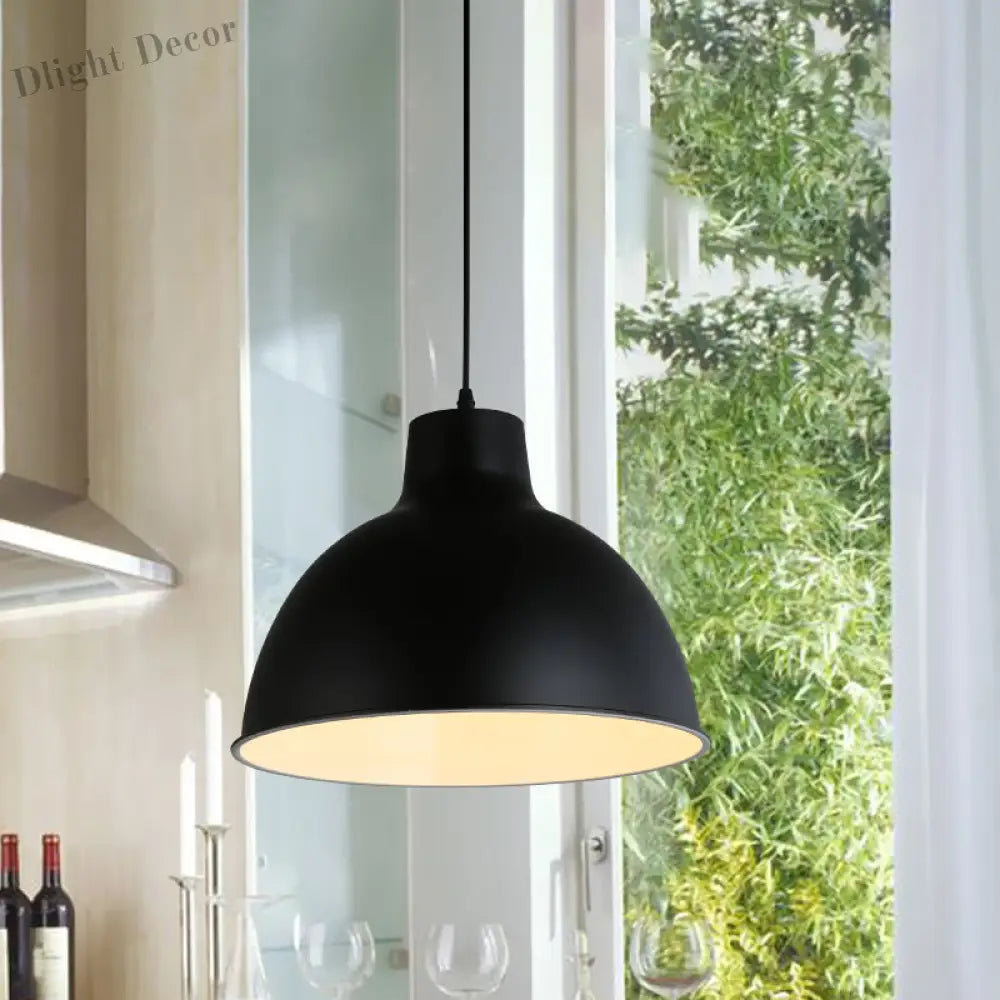 Modern Loft Style Dome Ceiling Light - 12"/14" Dia, Adjustable Cord - Black/White