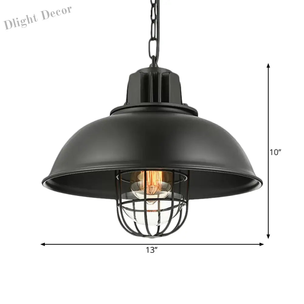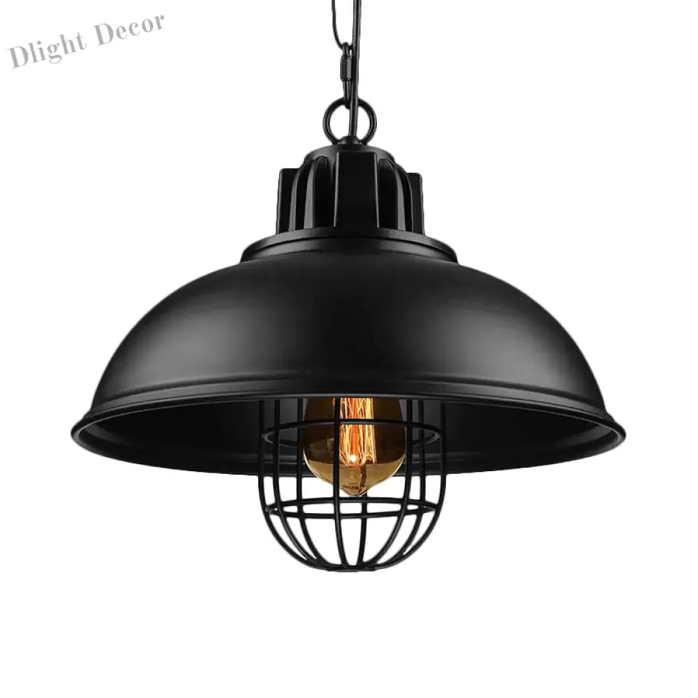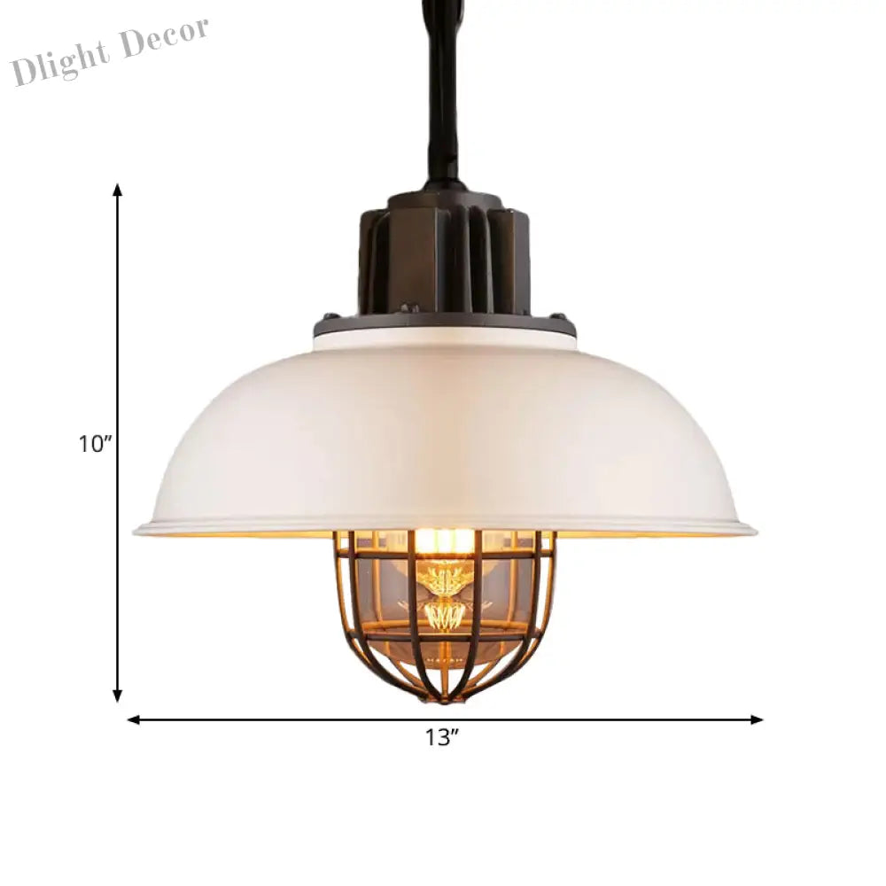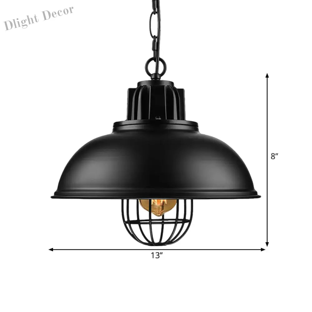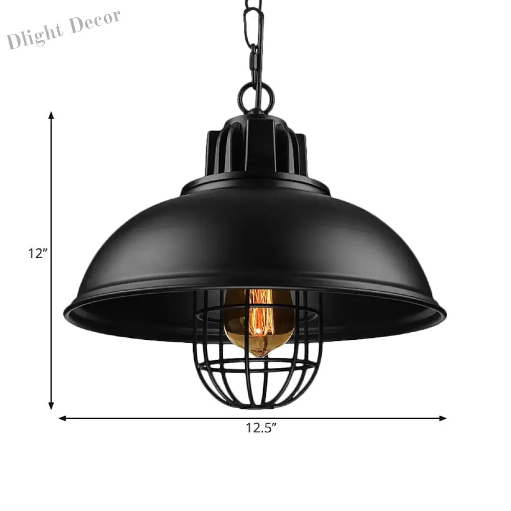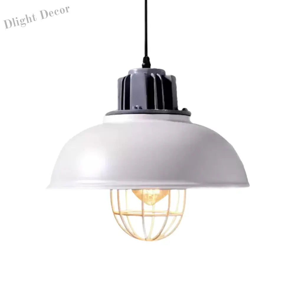 Elevate your restaurant, bar, or cafe with the captivating charm of Ezra's Industrial Pendant. This versatile hanging lamp features a unique black and white metallic dome shade encased in a wire cage, offering a blend of modern flair and rustic elegance.
