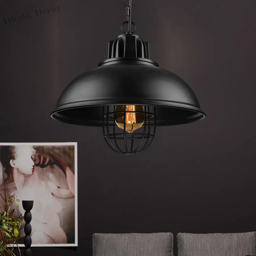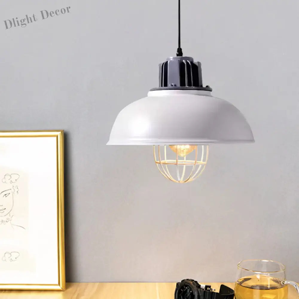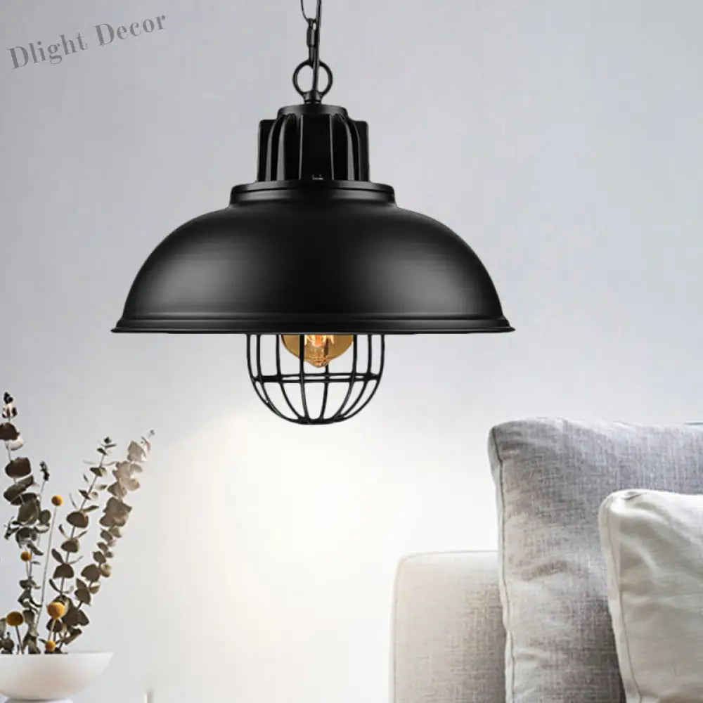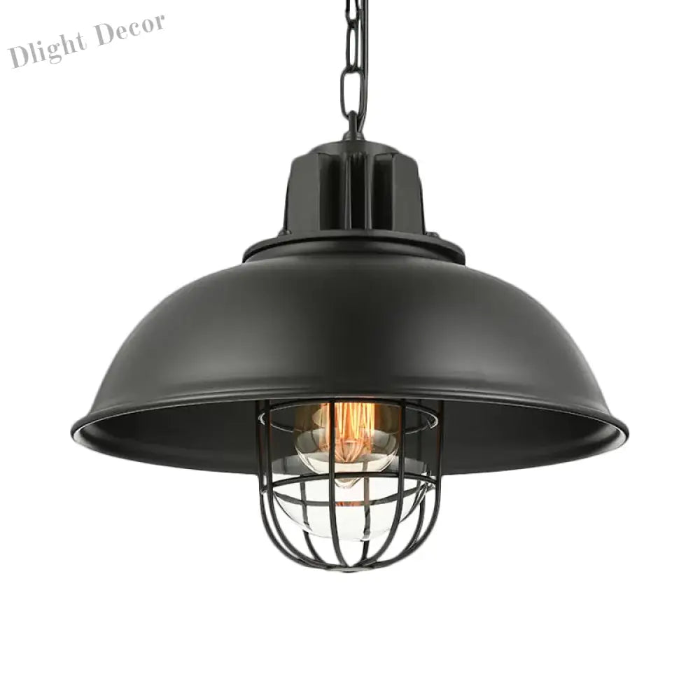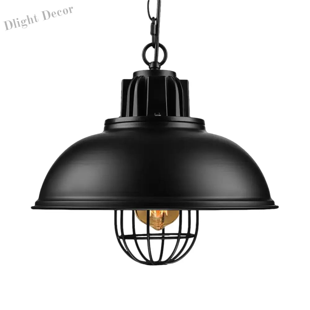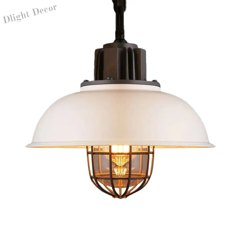 Elevate your restaurant, bar, or cafe with the captivating charm of Ezra's Industrial Pendant. This versatile hanging lamp features a unique black and white metallic dome shade encased in a wire cage, offering a blend of modern flair and rustic elegance.
