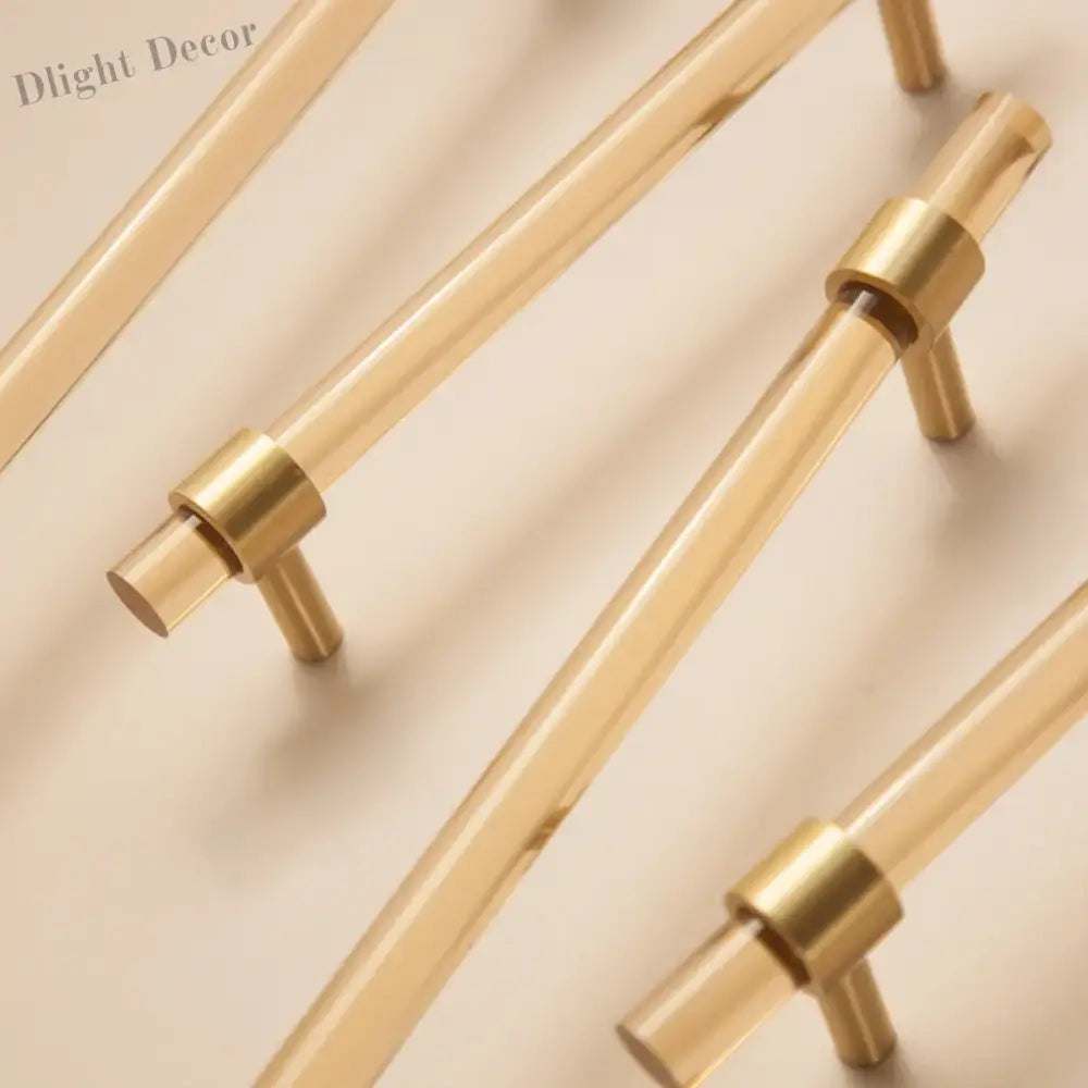 Champagne Acrylic and Brass Cupboard Handles – T-Bar Drawer Pulls for Bedroom and Bathroom