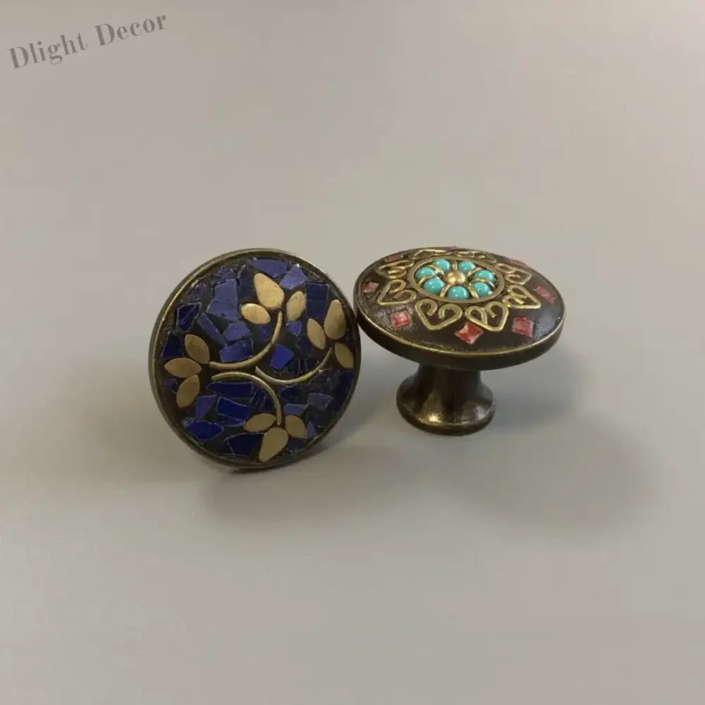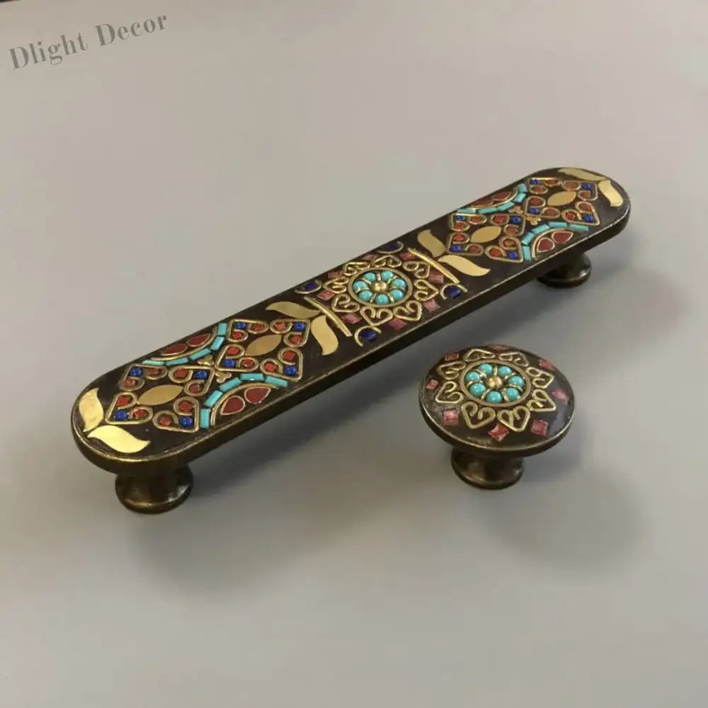 Bring the charm of exotic cultures to your furniture with these Ethnic Style Brass Art Handles. Featuring intricate Nepalese patch craftsmanship and copper wire inlay, these unique handles are perfect for drawers, cabinets, wardrobes, and more. Ideal for retro or rural-style decor, they double as elegant home decorations.