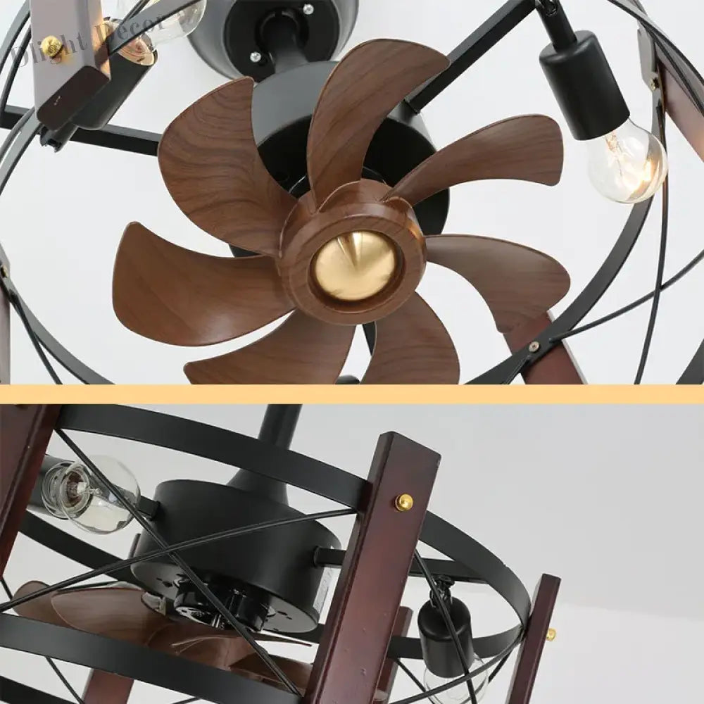 American Industrial Retro Fan Light Ceiling Fan Light Remote Control Vintage Fan Lamp