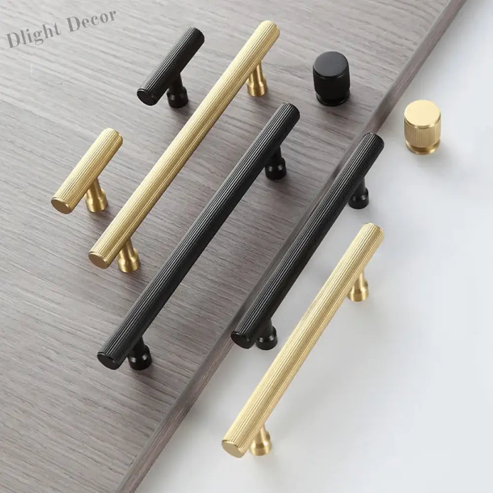 Upgrade your furniture with these Gold and Black Solid Brass Handles, featuring a sleek straight-line design. Crafted from durable solid brass, these T-bar handles and knobs are available in brass gold and black finishes. Perfect for cabinets, wardrobes, drawers, dressers, and cupboards, they combine functionality with a modern American style.