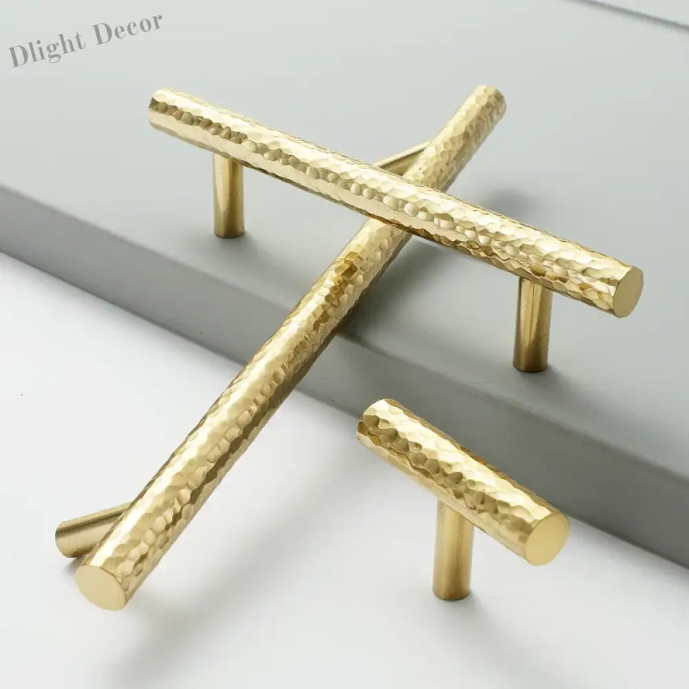 Hammered Brass Cabinet Handles – Light Gold Wardrobe Knobs and Drawer Pulls for American/Nordic Furniture