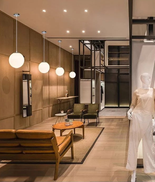 Elevate your clothing store's ambiance with the clean lines and classic style of this modern pendant light.