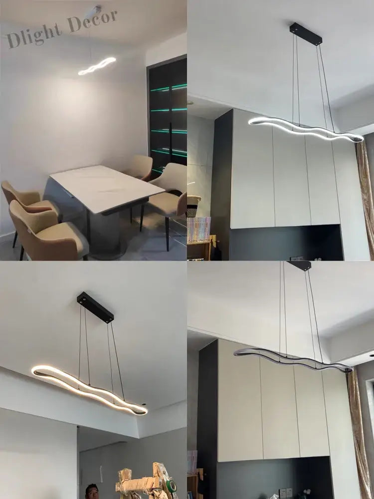 Elevate your restaurant or office decor with our Sleek Modern Restaurant Chandelier. This stylish lighting fixture, featuring a minimalist Nordic wave design, adds a touch of contemporary elegance to your dining rooms, bars, and office spaces.