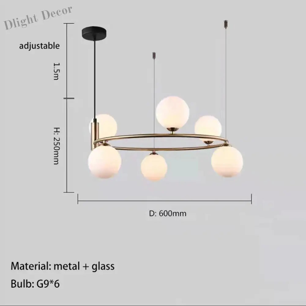 Elevate your interior decor with the Nordic Designer LED Ceiling Chandelier, a fusion of modern design and exquisite lighting craftsmanship. This chandelier features a graceful glass lampshade and G9 bulb socket, making it the perfect addition to your living room, center table, bedroom, and home decor.