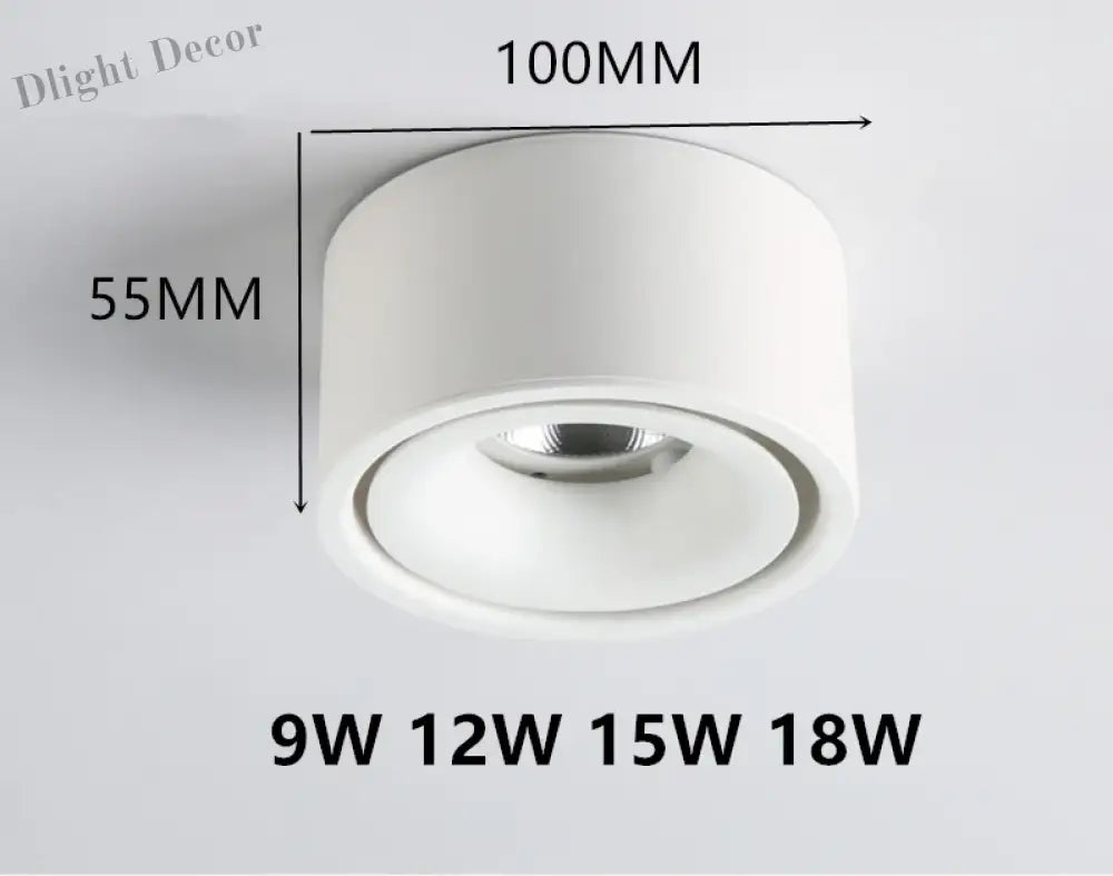 Recessed LED Light Spot - Plafond LED Downlight with Surface COB, Dimmable Ceiling Lamps in 9W, 12W, 15W, 18W for Room, Round Bedroom Lighting