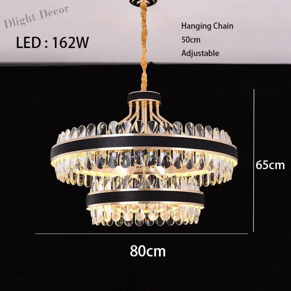 Elevate your interior decor with these crystal dimmable LED oval ceiling chandeliers. Crafted with precision and featuring a luxurious black leather design, these hanging lamps are perfect for adding opulence to your dining room and enhancing your home decor. Illuminate your space with adjustable lighting levels and versatile chandelier lighting.