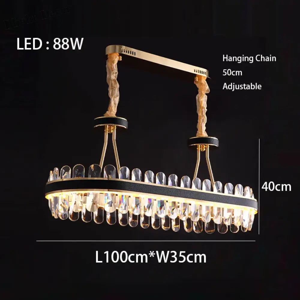Dimmable LED Crystal Oval Ceiling Chandeliers - Black Leather Luxury Lustres for Dining Room Decor