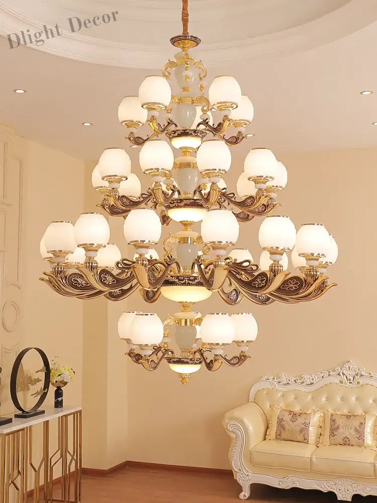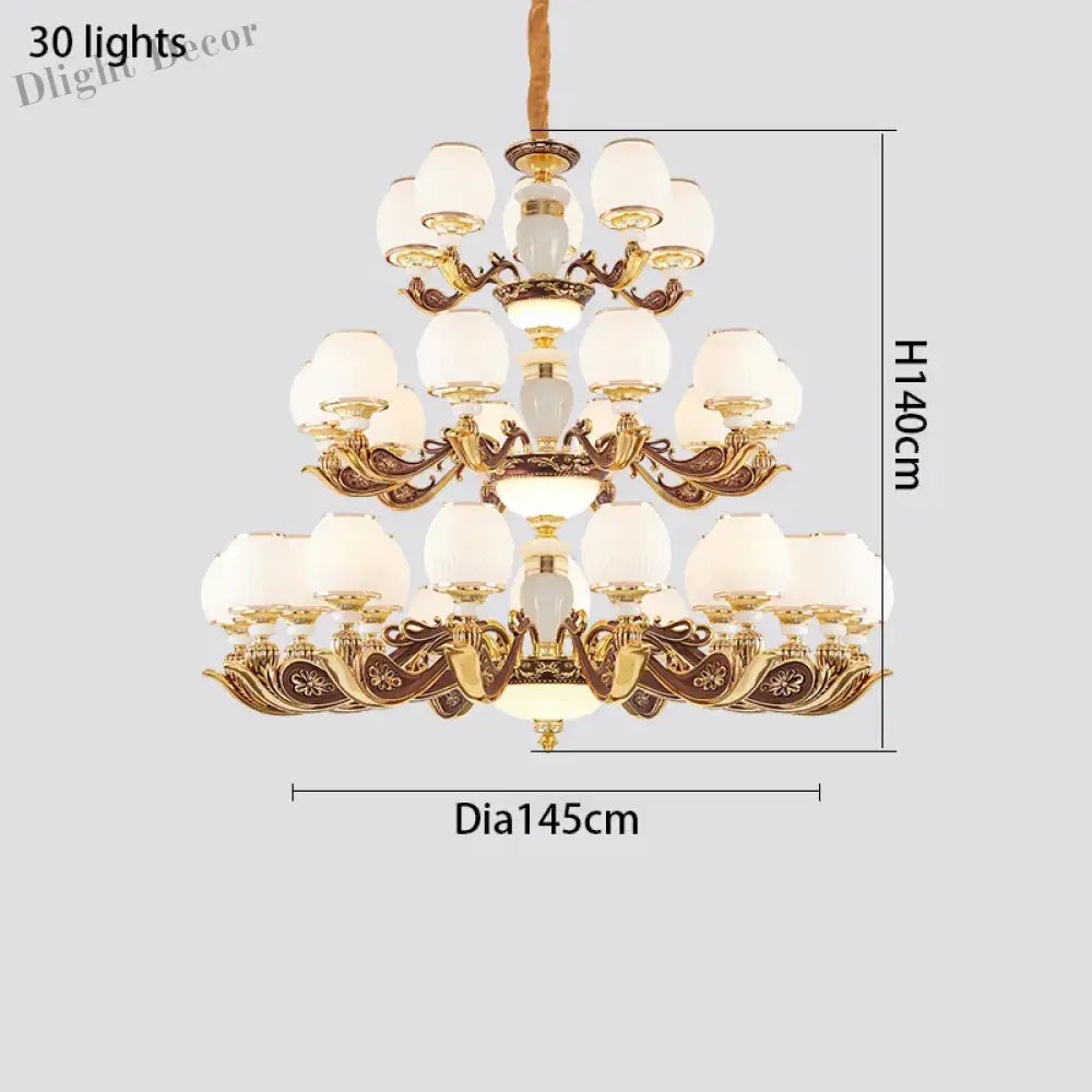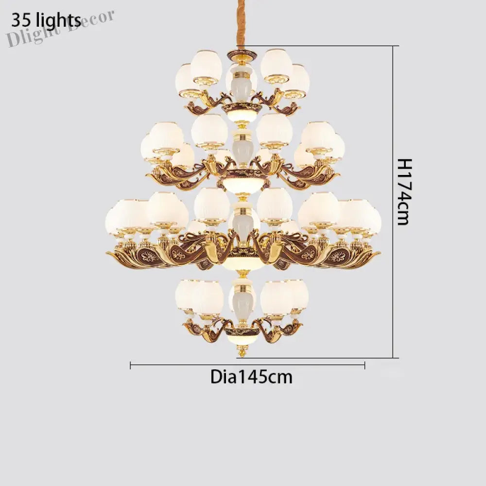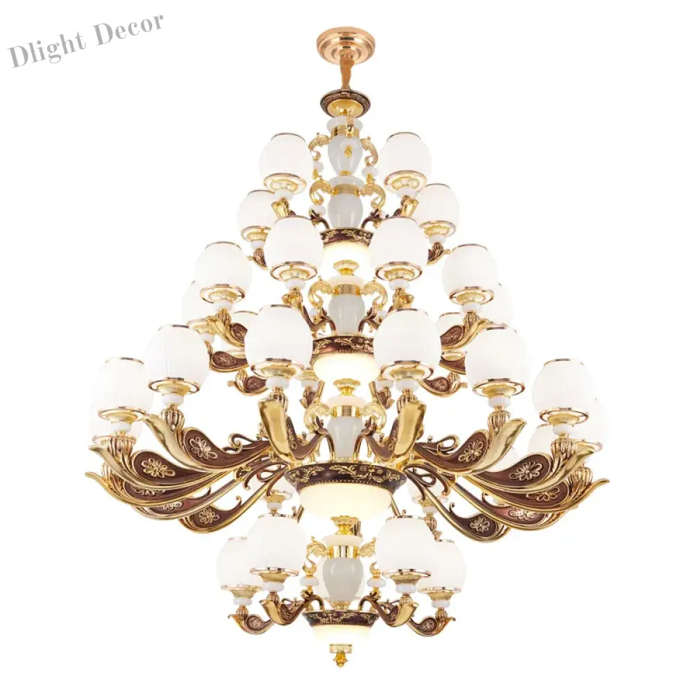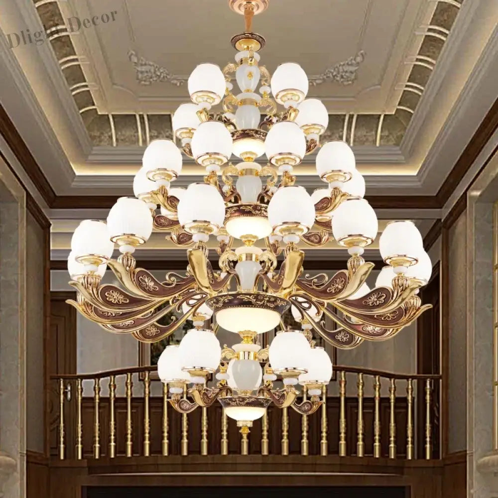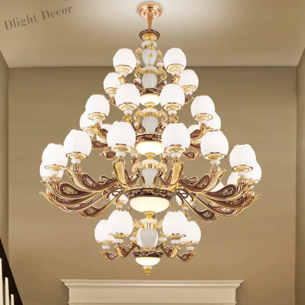 Enhance your interior decor, living rooms, hotels, villas, and grand hallways with the European Style Large Chandelier. It is an elegant statement piece that adds European elegance, grandeur, and opulence to your home or commercial space. Illuminate your space with this stylish and functional chandelier, featuring a design that enhances the overall aesthetics of your grand environment.