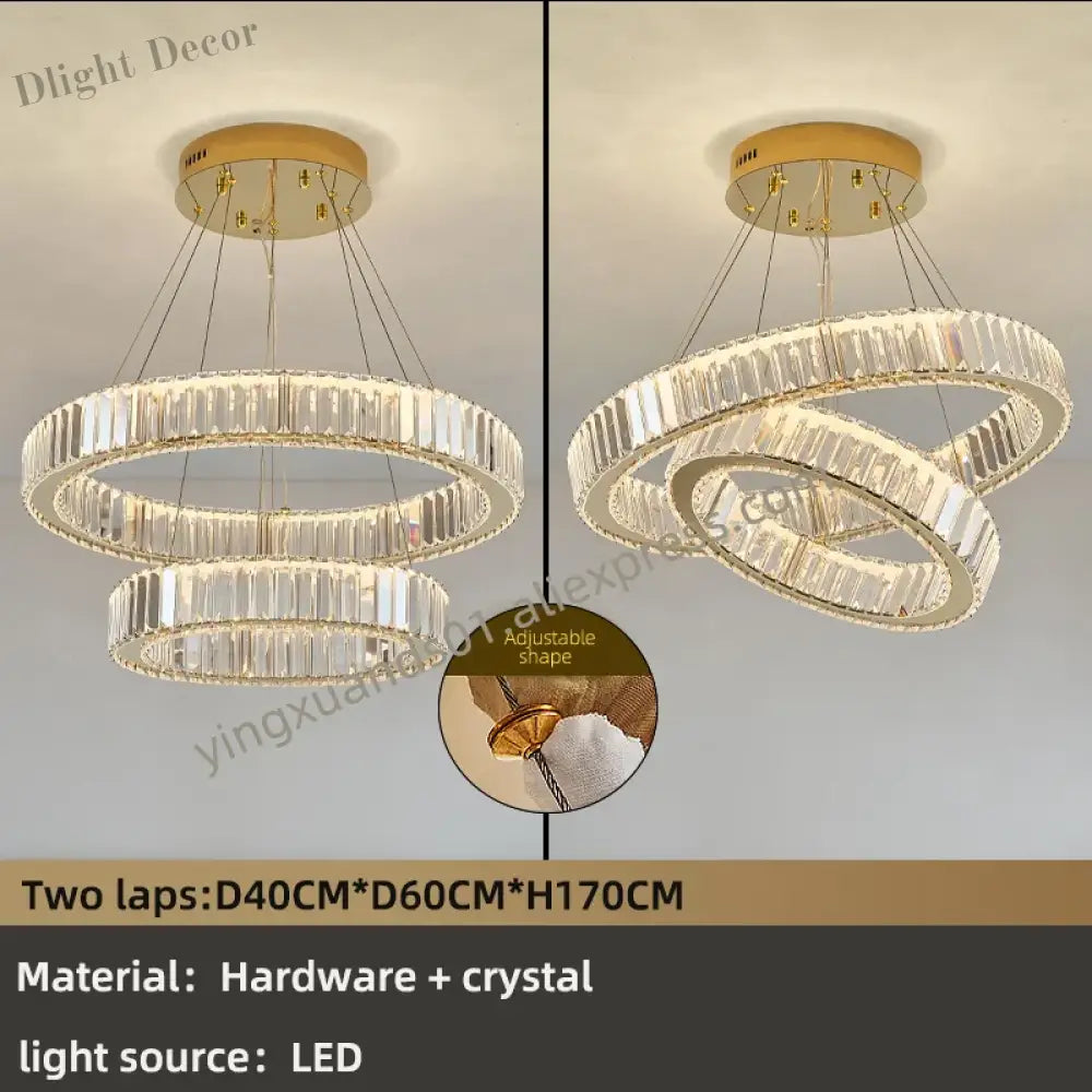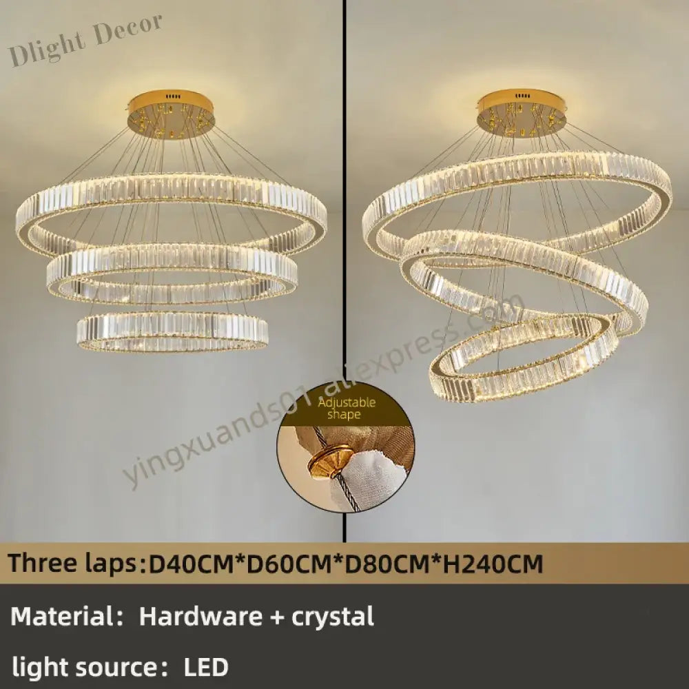 Elevate your decor with the Modern Luxury Crystal Chandeliers, featuring elegant crystal chandeliers and a golden finish, and enjoy the perfect blend of opulence, contemporary aesthetics, and efficient illumination. Illuminate your living rooms, stairs, and duplex halls with grace and a sense of luxury.