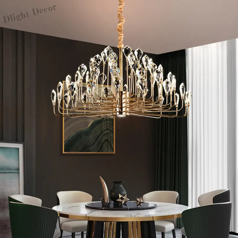 Serena Gold Crystal LED Chandelier – Modern Pendant Light for Dining & Living Room