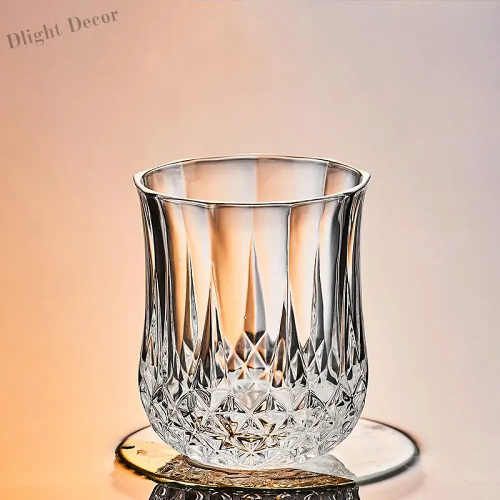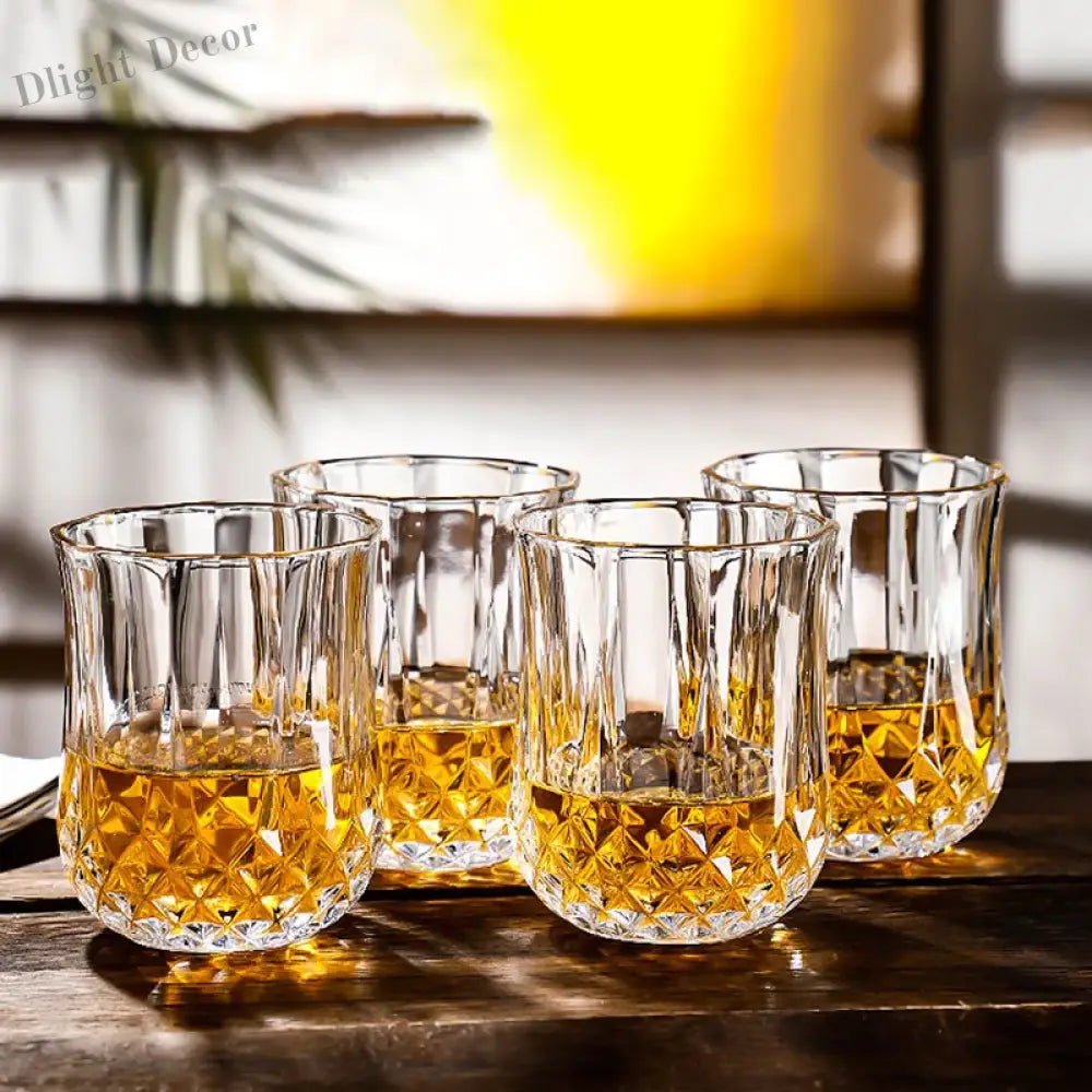 Add a touch of elegance to your table with the Dlight Decor 4pc Diamond Cut Glass Set. Each 215ml cup features a distinctive diamond-textured surface that reflects light beautifully—perfect for serving juice, wine, cocktails, or whiskey at parties, weddings, or cozy gatherings.