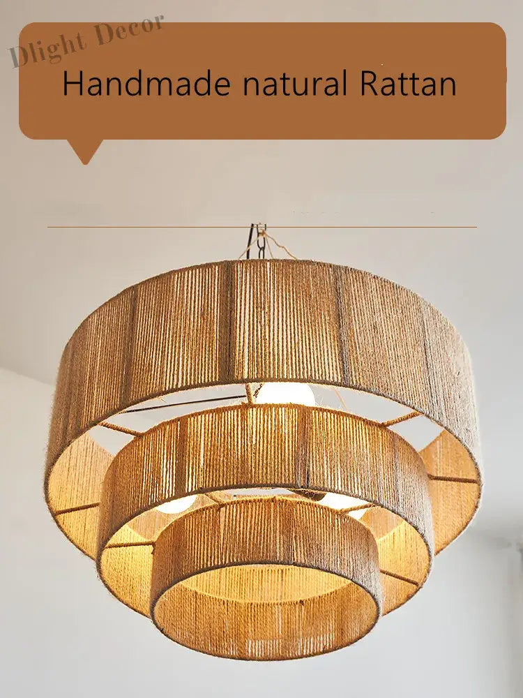 Bohemian Retro Chandelier - Handmade Rattan Pendant Lamps for Creative Country-Style Decor