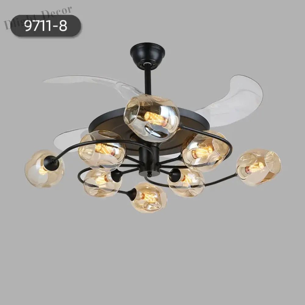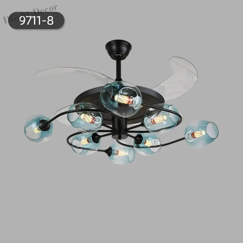 Transform your living room or restaurant with our NEW Invisible Fan Light, a perfect combination of minimalist design and functional elegance. This ceiling fan light features an innovative invisible fan design that seamlessly integrates into any modern decor. Crafted with high-quality materials including iron, glass, and ABS, it offers durability and style. Available in two configurations, 6 heads or 8 heads, and in cognac or blue colors, this fan light complements various interior themes. Equipped with a 35W motor and an E27 light source, it provides efficient lighting and air circulation. The fan light comes with a remote control for easy operation, offering 6-gear wind speed adjustments and a forward/reverse function, ensuring comfort in every season.