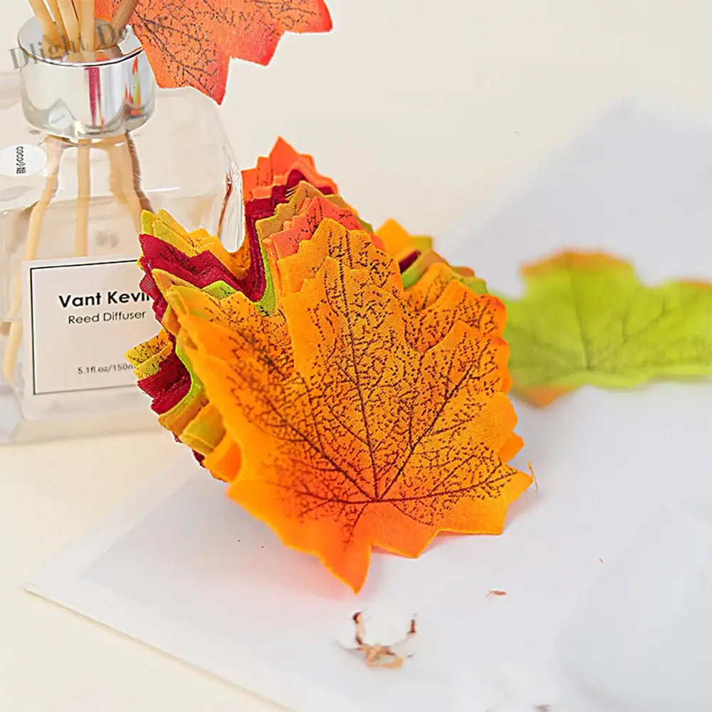 Celebrate the warmth of the season with the Dlight Decor Artificial Maple Leaves a 50 piece collection of silk leaves designed in rich autumn tones to bring a festive and cozy atmosphere to any setting. Each leaf features soft realistic veining and a smooth fabric texture ideal for styling tabletops backdrops or hanging displays.