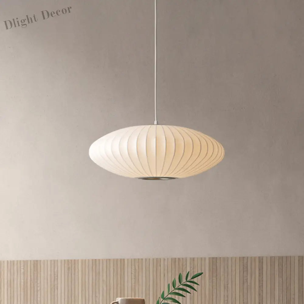Juliette's Saucer Hanging Ceiling Light - Modernist Fabric Pendant in White