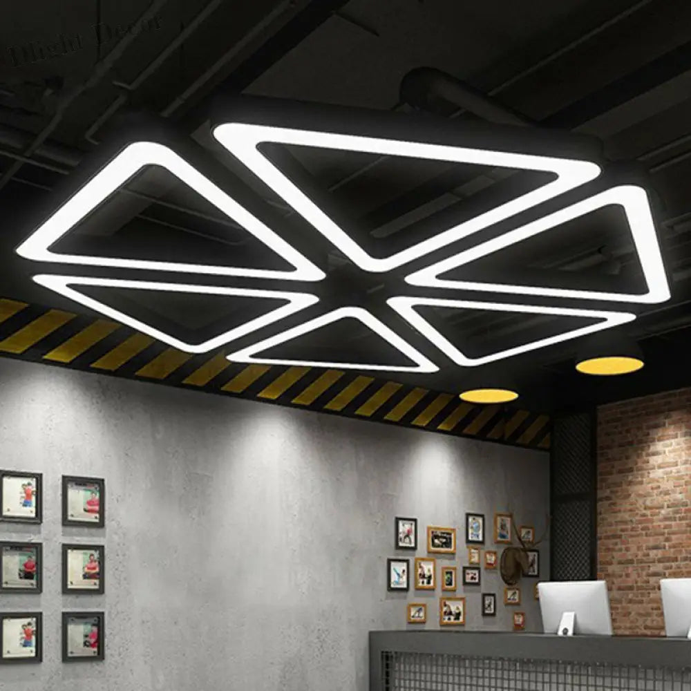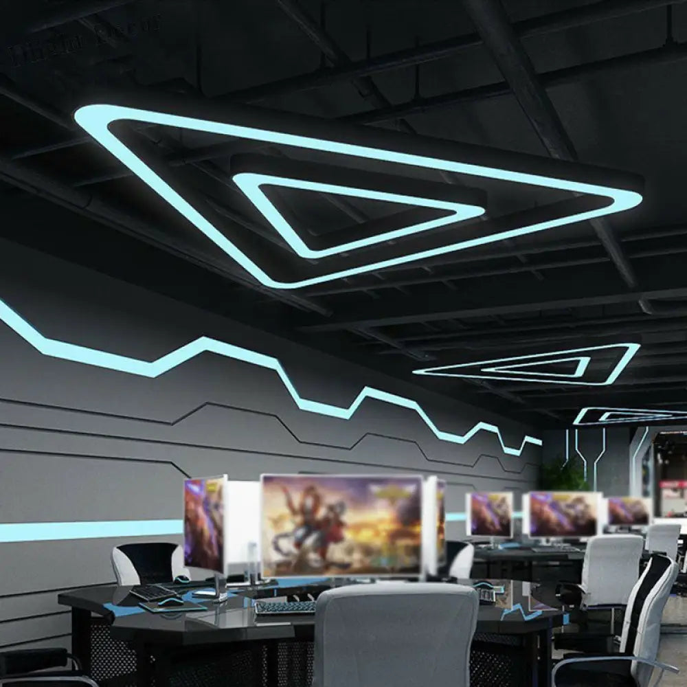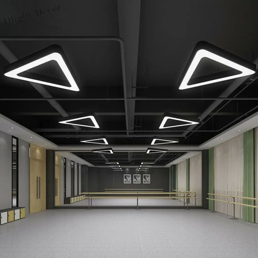 Elevate your gym's ambiance with our "Contemporary LED Gym Chandelier," a modern, triangular suspension light that perfectly blends style and functionality. Its sleek design and black acrylic construction make it a standout piece, ideal for modern gym settings.
