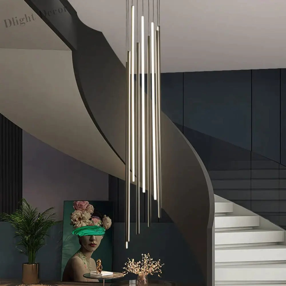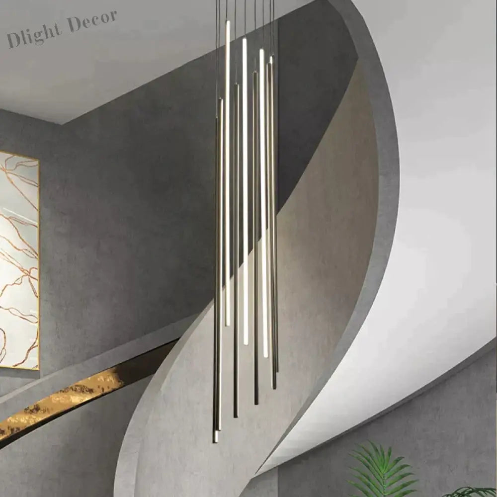 Introducing the Harper Black Stair Long LED pendant light , a stunning work of art designed to transform your home into a haven of elegance and sophistication. This captivating chandelier is more than just a lighting fixture; it's a focal point that enhances the architecture and ambiance of your space.