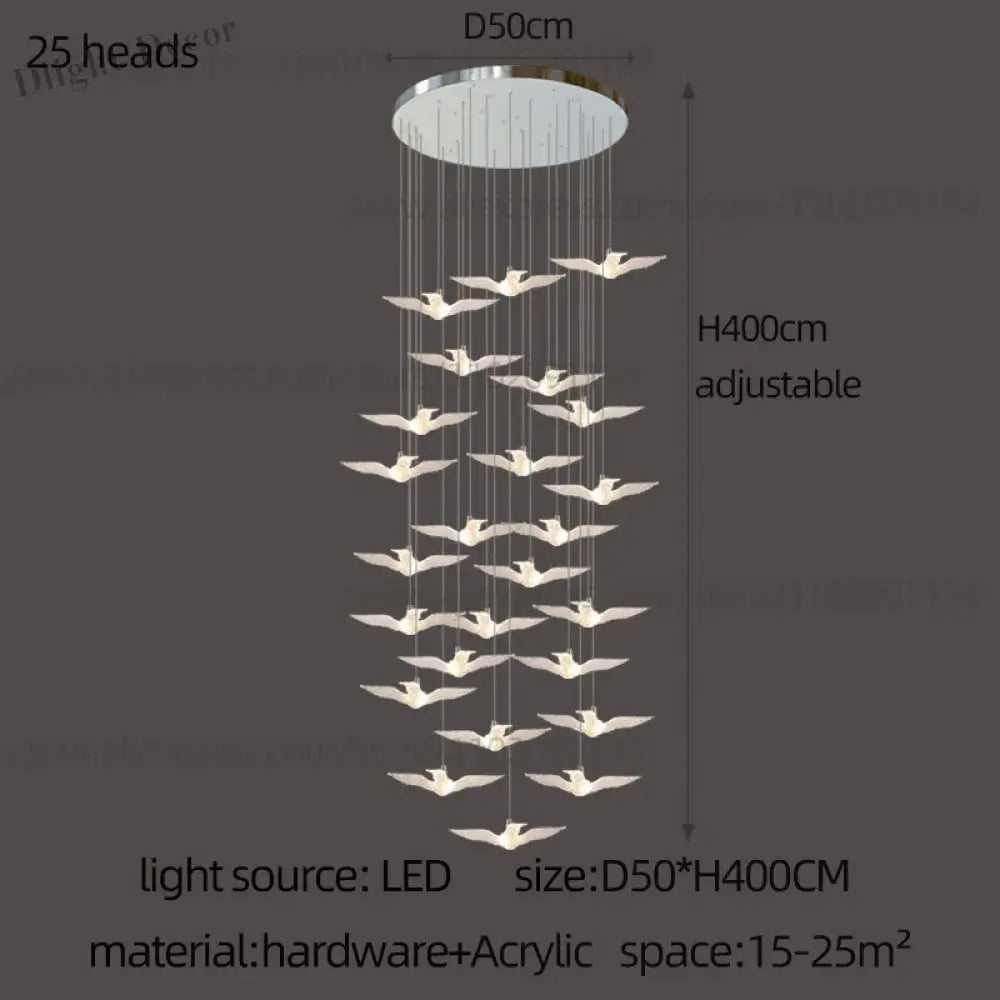 Elevate your living room, kitchen, or staircase with our Modern LED Bird-Shaped Pendant Lamp. This elegant lighting fixture combines modern design with artistic inspiration, featuring a captivating bird-shaped motif that adds a touch of charm and sophistication to your space. Crafted with meticulous attention to detail, this lamp serves as a captivating addition to your interior decor, providing both functional and decorative illumination.