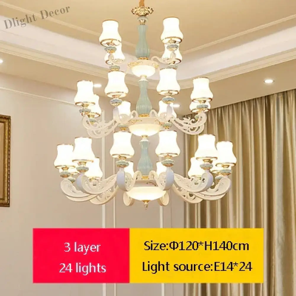 Enhance the grandeur of your duplex building, villa, or staircase with our exquisite European-Style Duplex Building Chandelier. This chandelier seamlessly blends classical European aesthetics with modern functionality, creating a dust-proof, hollow, and captivating lighting fixture that adds sophistication and charm to your space.