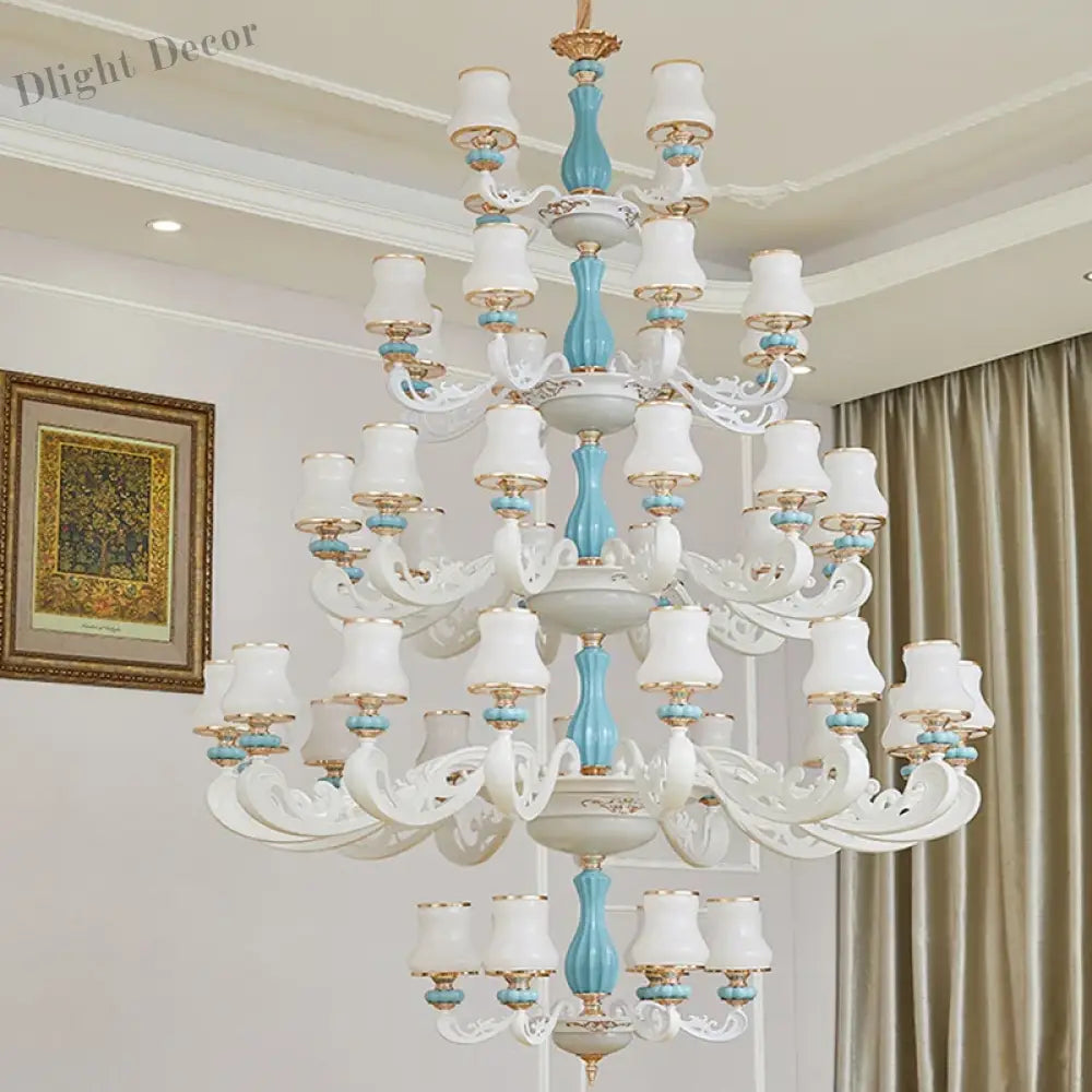 Elegant European-Style Duplex Building Chandelier - Ideal for Villa Living Rooms, Grand Halls, and Stairwells