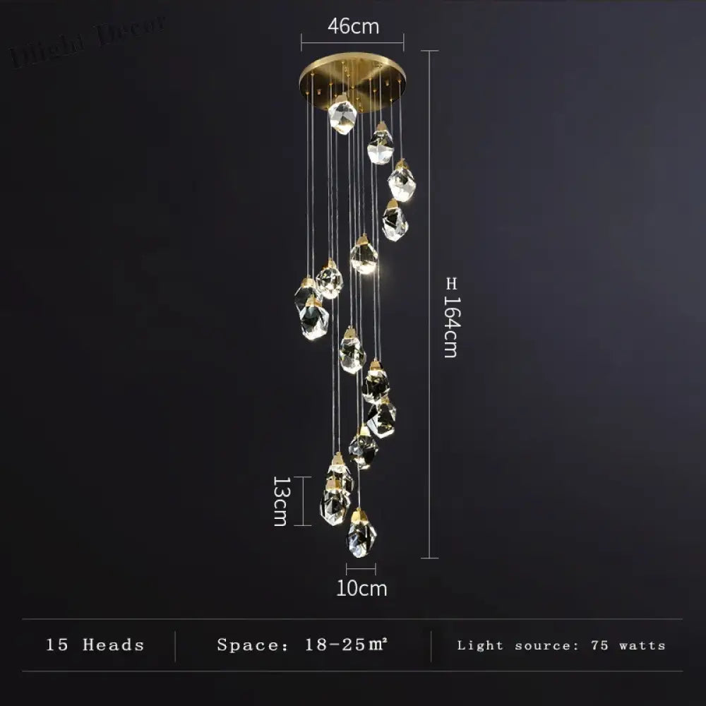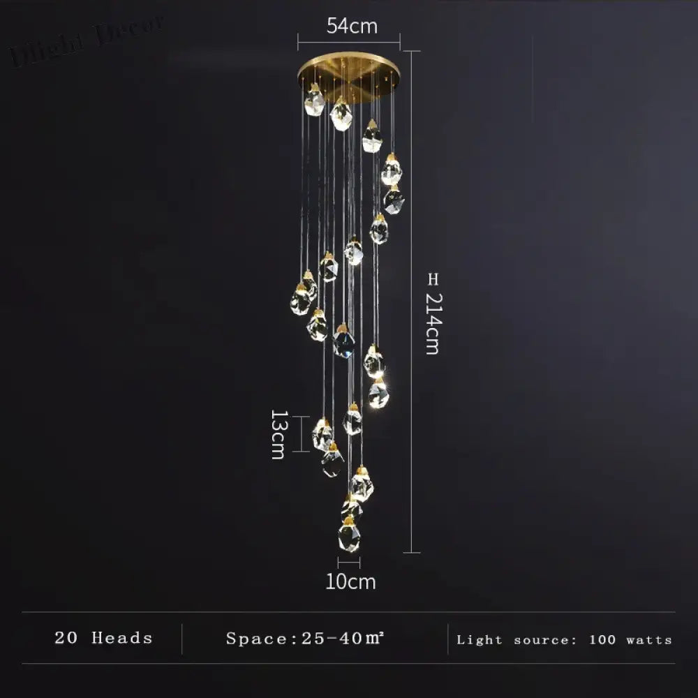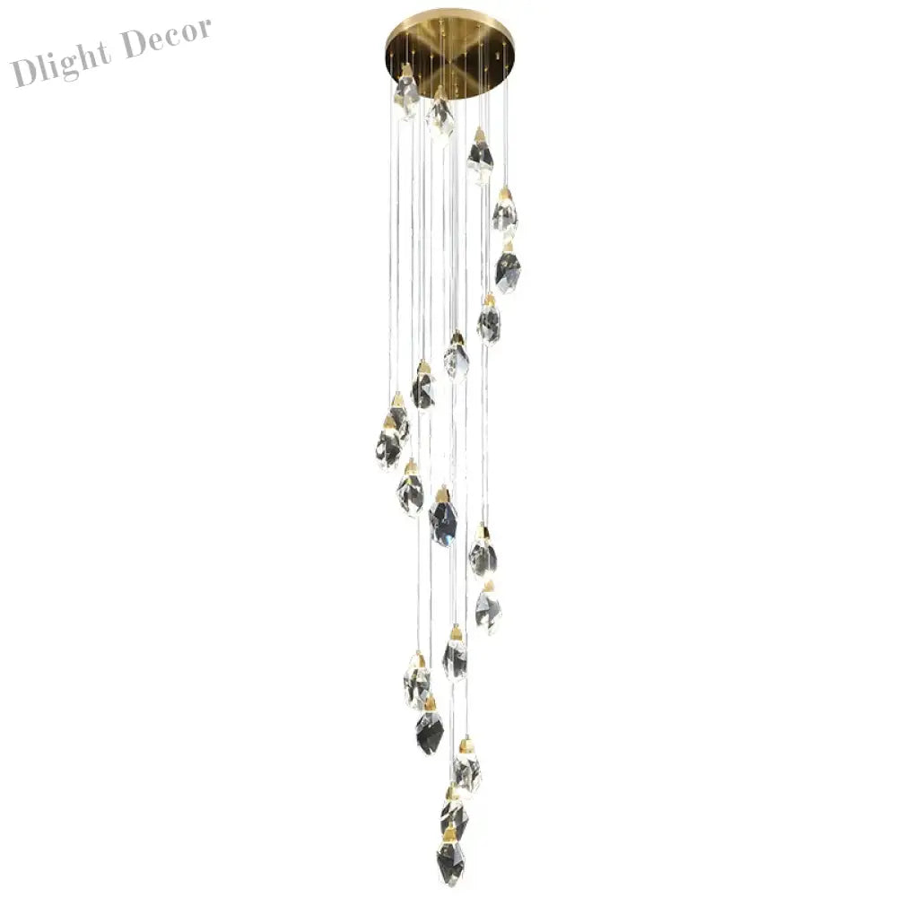 Enhance the elegance of your staircase, living room, duplex, villa, or middle building with our exquisite Modern Simple Light Luxury Crystal Chandelier. This chandelier embodies modern simplicity and luxury, creating a stunning focal point in a variety of spaces.