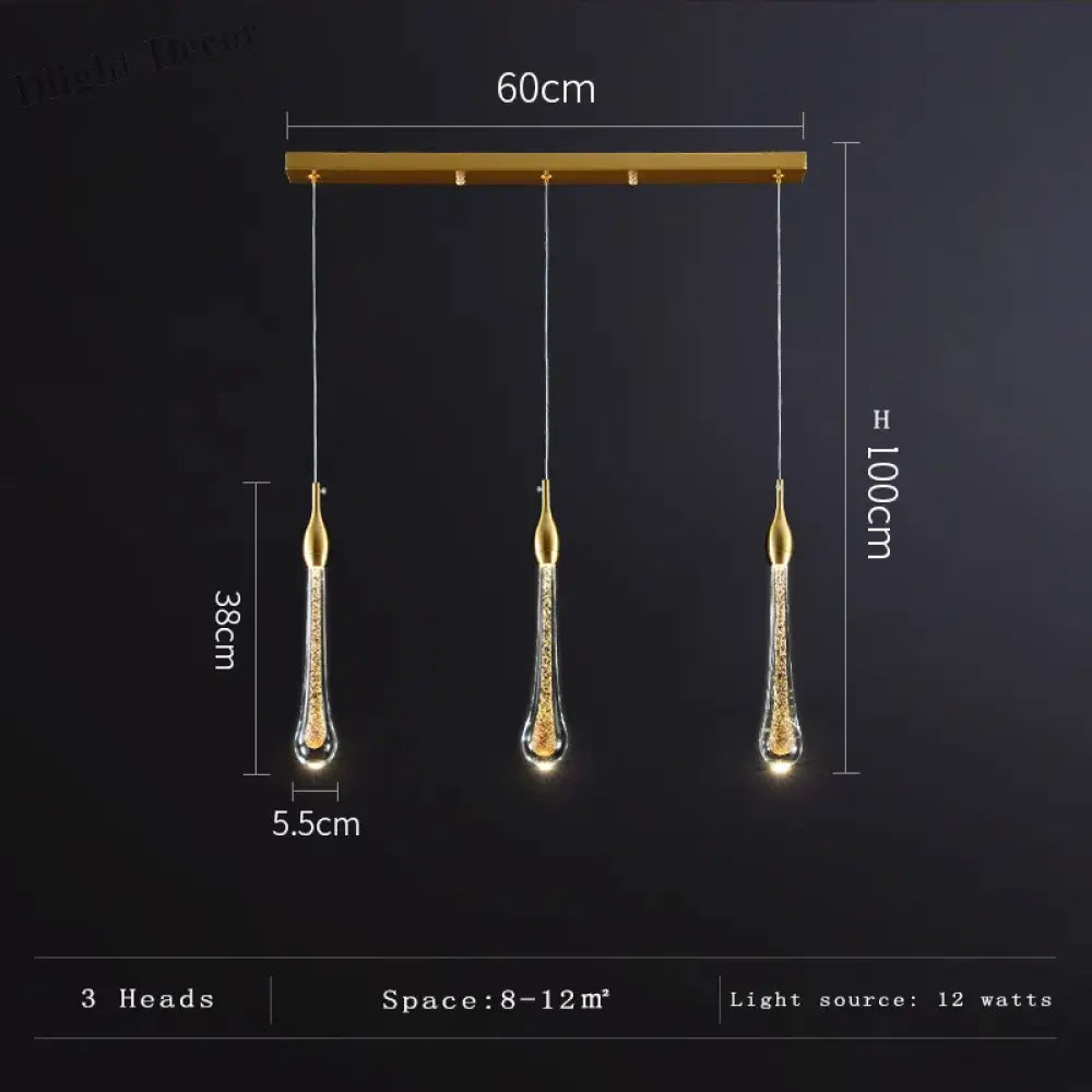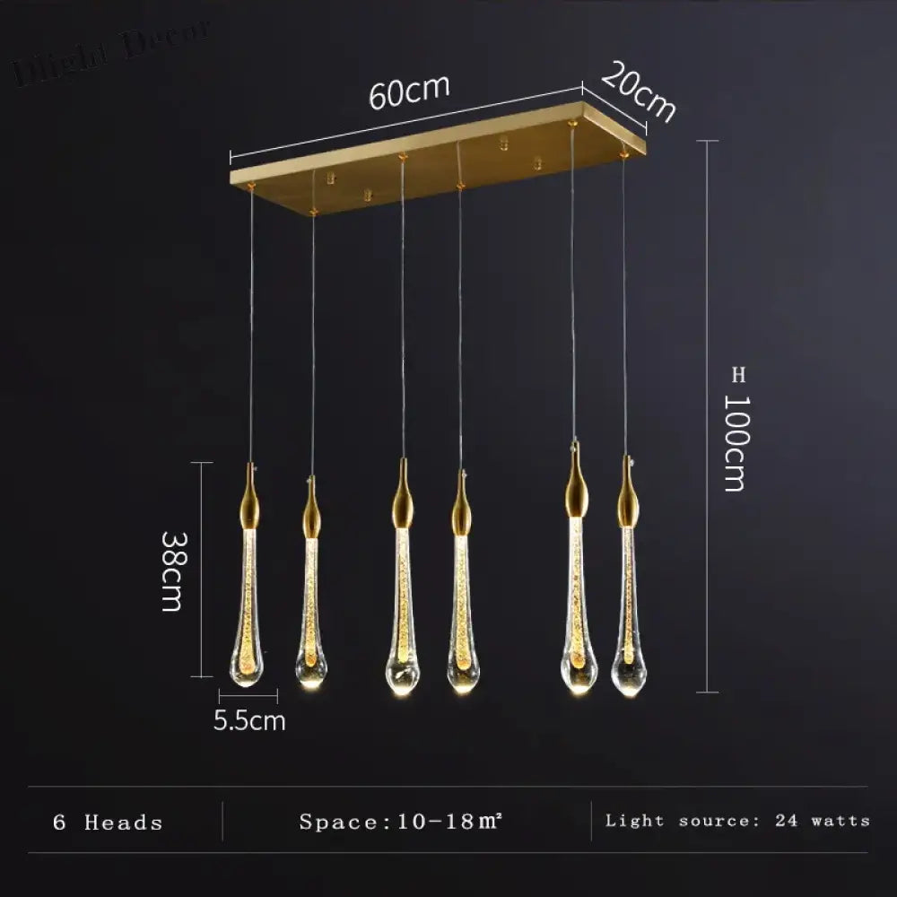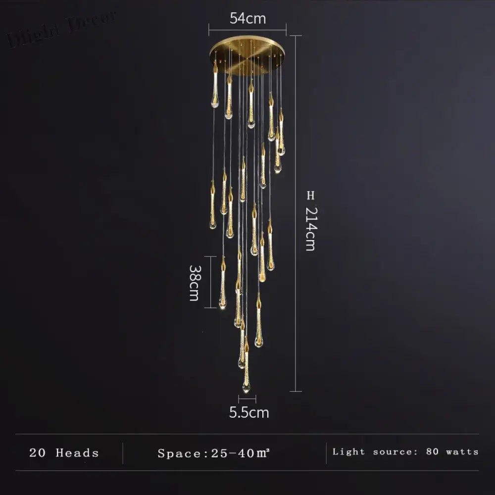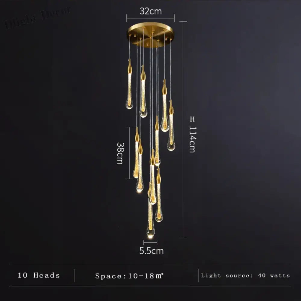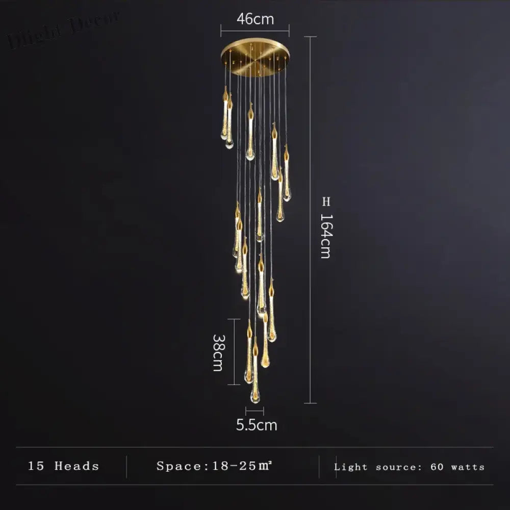 Water Drop Accents: Adorned with water drop-shaped elements, this chandelier creates a mesmerizing play of light and shadow, fostering a warm and inviting atmosphere.