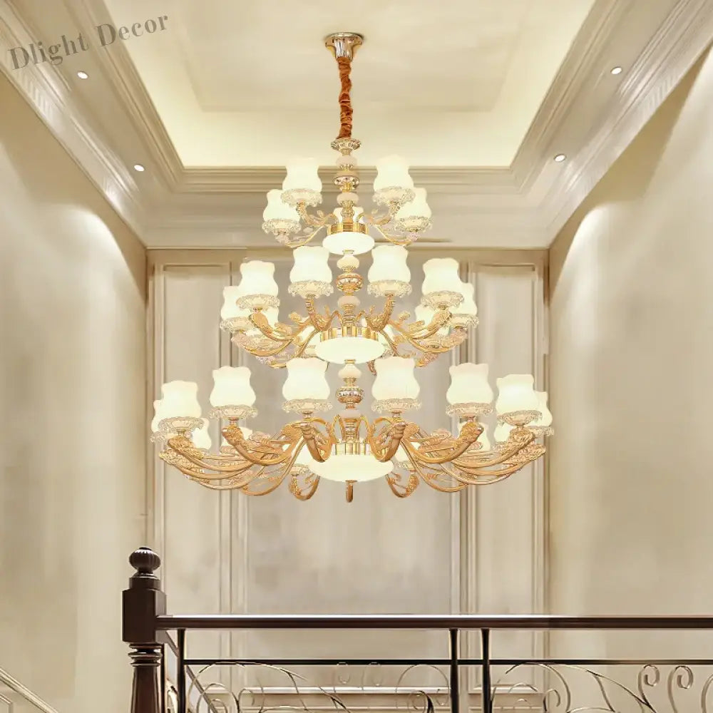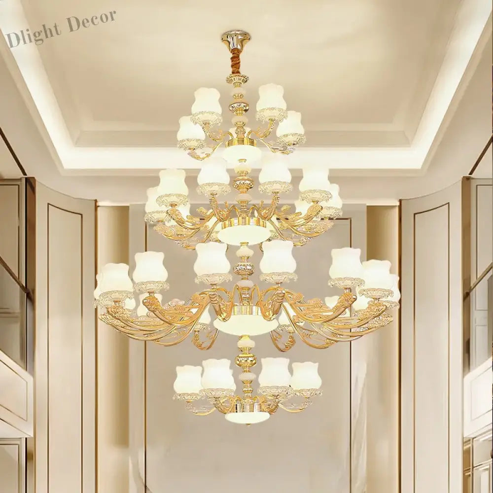 Elevate the ambiance of your duplex building with our European Style Duplex Building Chandelier. This exquisite lighting fixture embodies European design, offering simple elegance and timeless charm. Ideal for large living rooms, hallways, and staircases, it stands as a captivating and stylish lighting solution that enhances the overall beauty and sophistication of your interior decor. Illuminate your space with the warm and inviting glow of this elegant chandelier.