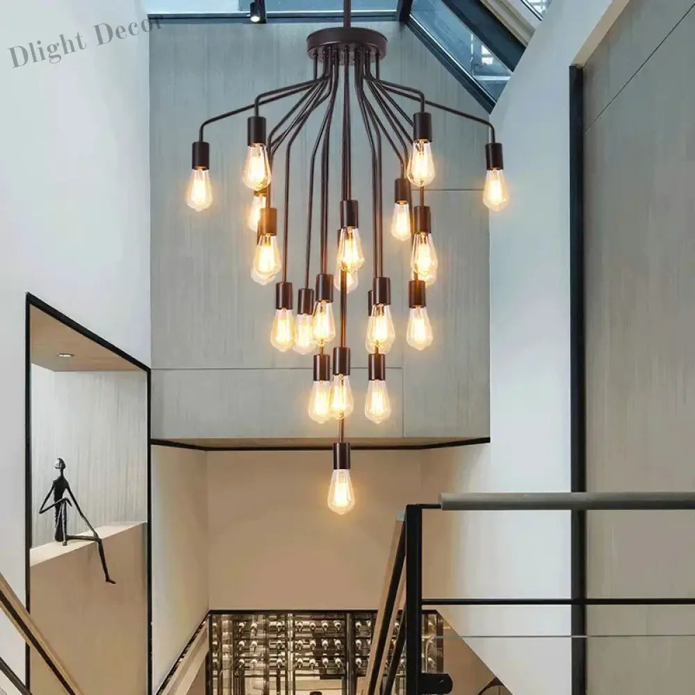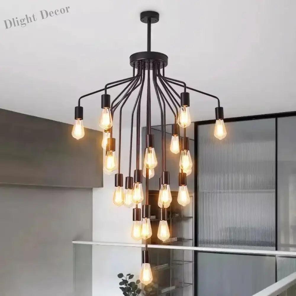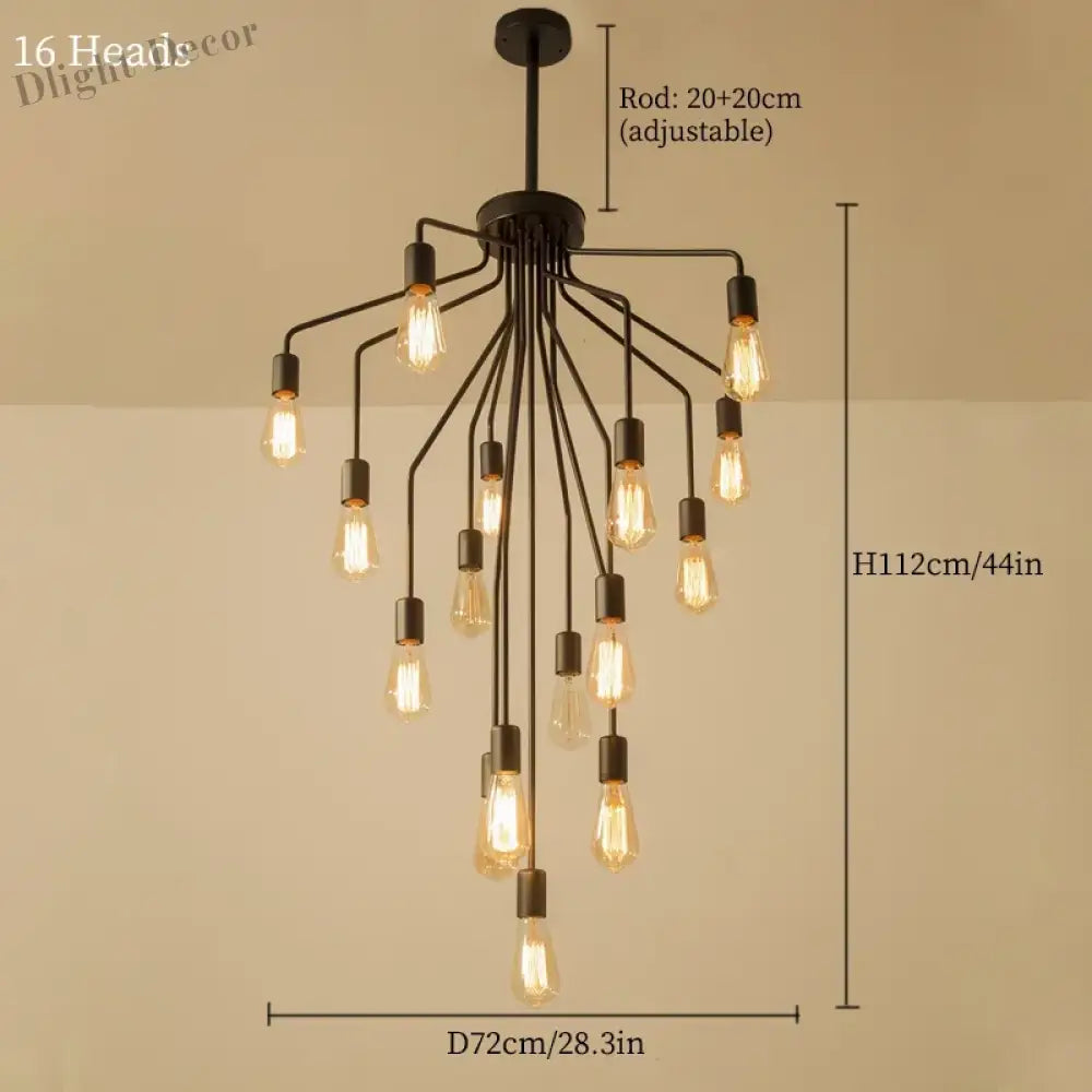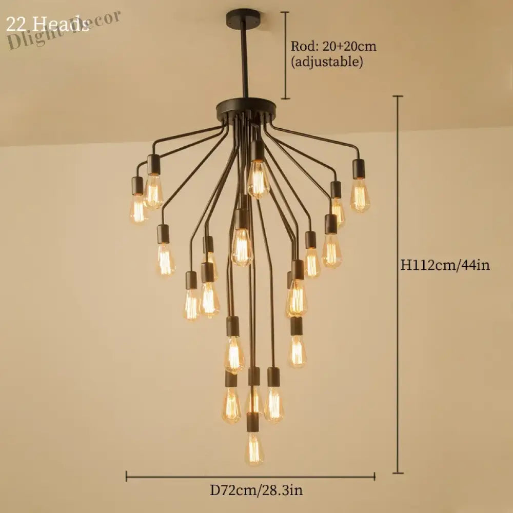 Illuminate your staircase loft villa with Grace's American Iron Ceiling Chandelier, a captivating lighting fixture that adds a touch of retro charm to any space. Crafted from high-quality iron and glass, this ceiling lamp exudes elegance and sophistication. With its adjustable hanger rod length of 20+20cm, it provides versatility in installation, making it suitable for various settings including restaurants, bars, dining rooms, living rooms, and bedrooms.