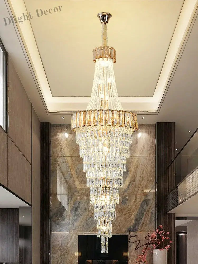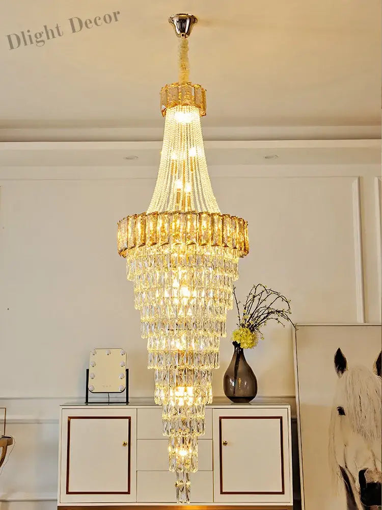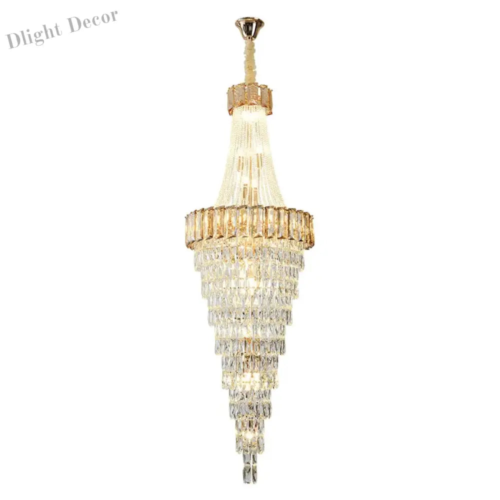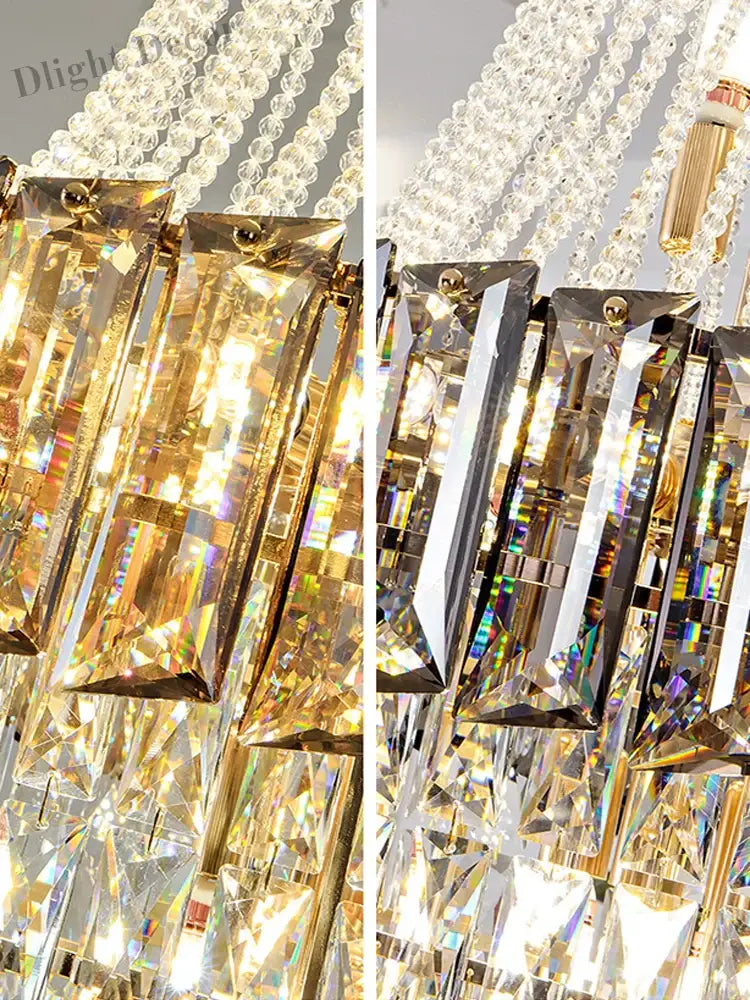 Large Modern Crystal Chandelier For Staircase Luxury Amber Smoky Gray Home Decor Hanging Light Fixture Long Hall Lobby Led Lamp