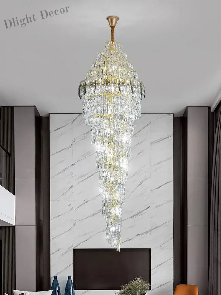 Modern Luxury Staircase Chandelier - Golden Elegance with Crystal Accents for Duplex Buildings, High Ceilings, and Decorative Lighting