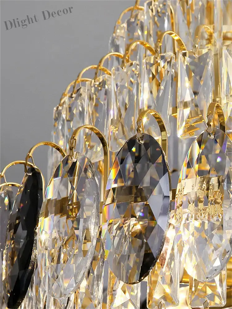 Crystal Accents: Adorned with crystal elements, it creates a dazzling play of light, adding opulence and enhancing the overall ambiance of the room.