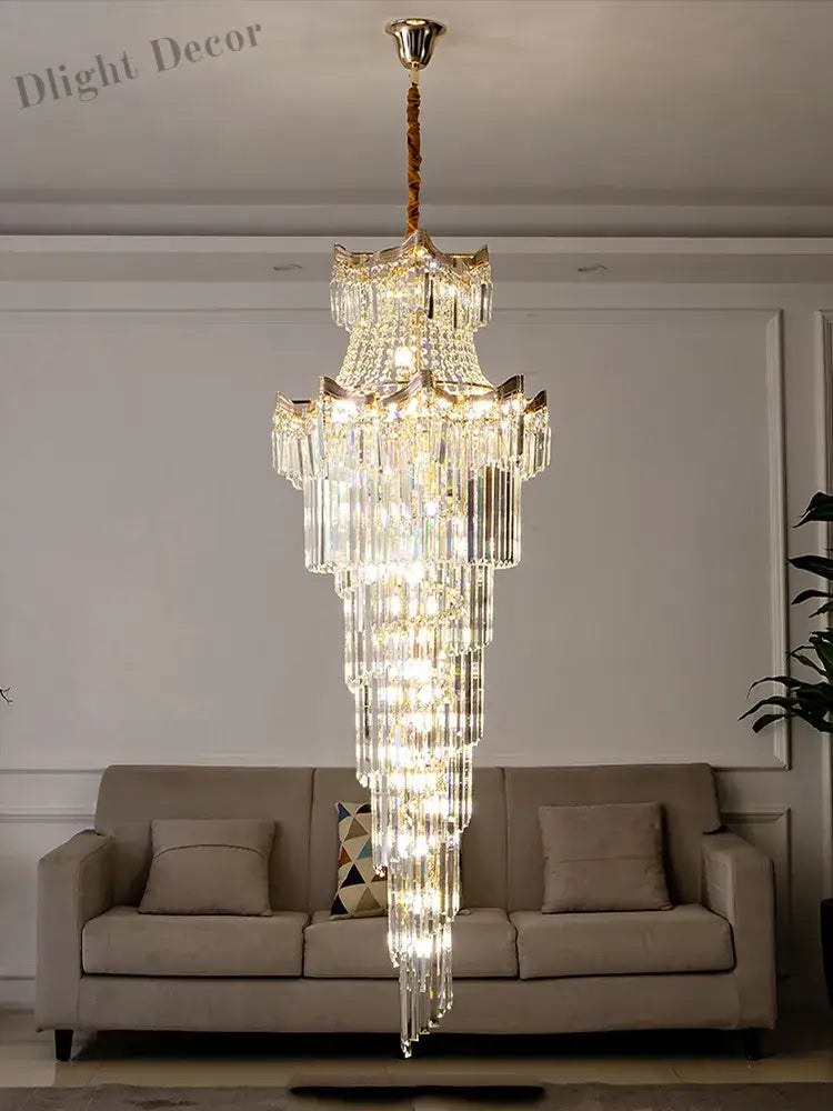 Elevate the ambiance of your villa's living room with our New Design Crystal Chandelier. This exquisite lighting fixture embodies a new design, offering grandeur and opulence, making it perfect for high ceilings, hotel lobbies, and staircase illumination. This large chandelier stands as a captivating and stylish lighting solution that enhances the overall beauty and sophistication of your interior decor. Illuminate your space with the warm and inviting glow of this elegant long chandelier.
