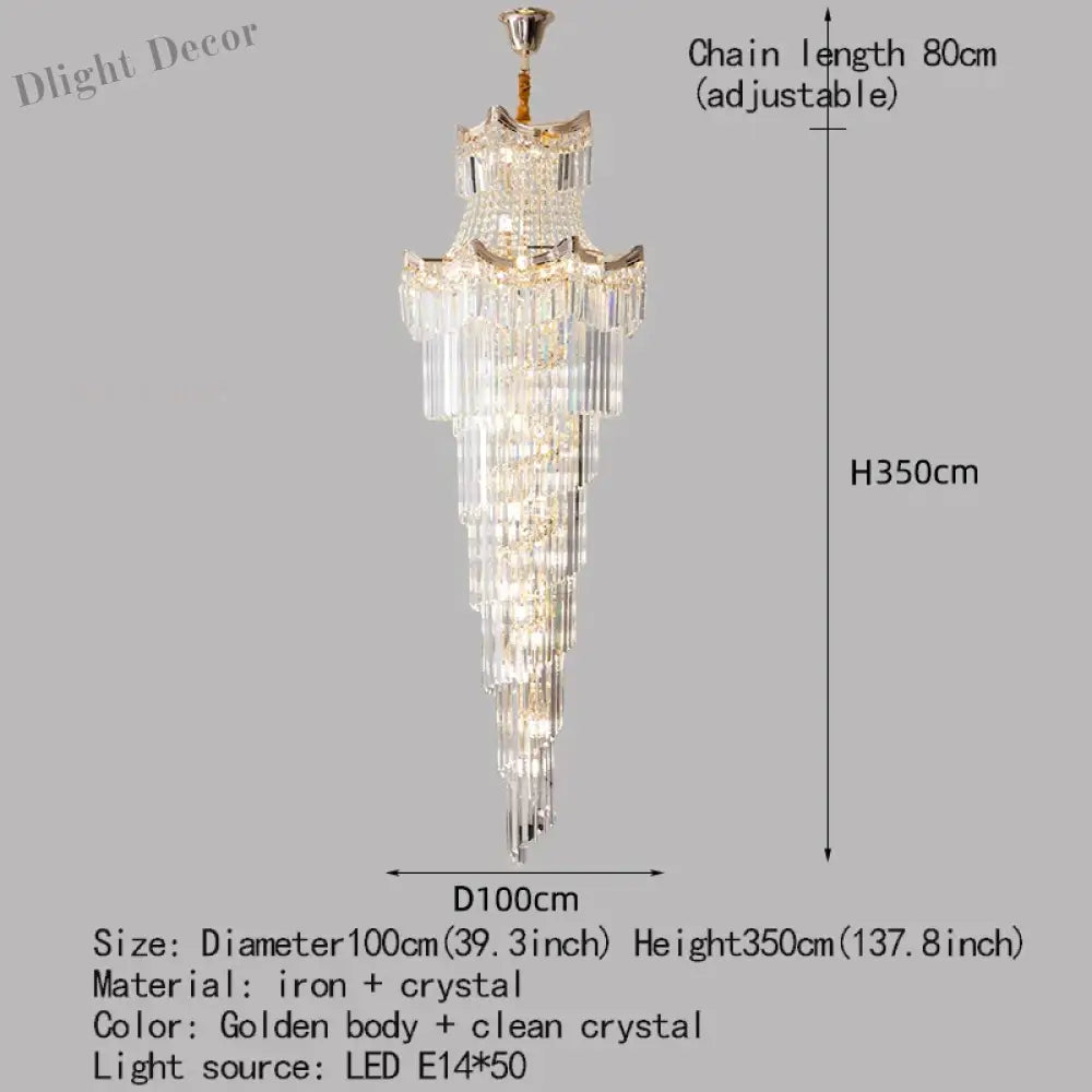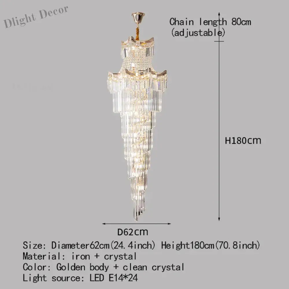 Versatile Application: Ideal for high ceilings, hotel lobbies, and illuminating grand staircases, this chandelier elevates the atmosphere, creating a sense of luxury and elegance.