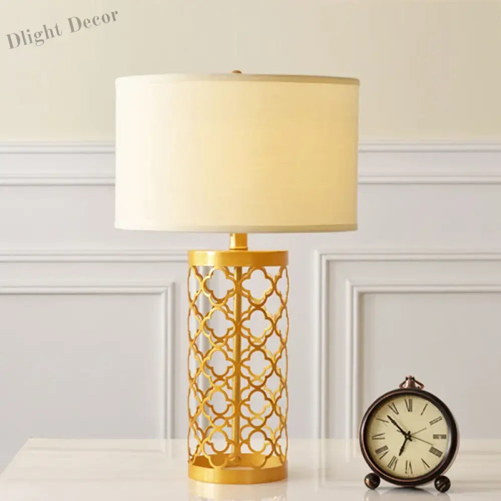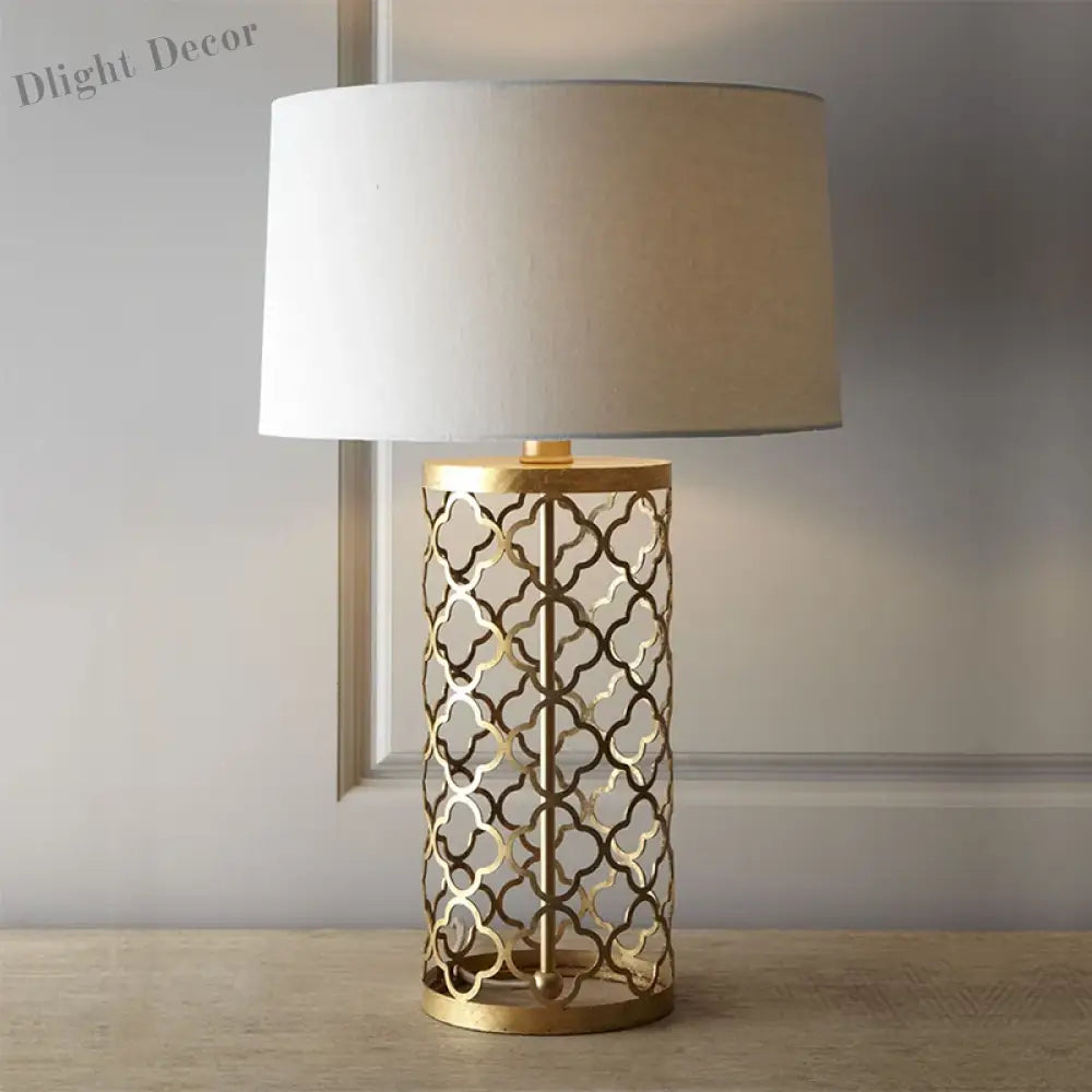 American Golden Wrought Iron Hollow Pattern Table Lamp - Luxury Bedside LED Desk Lighting