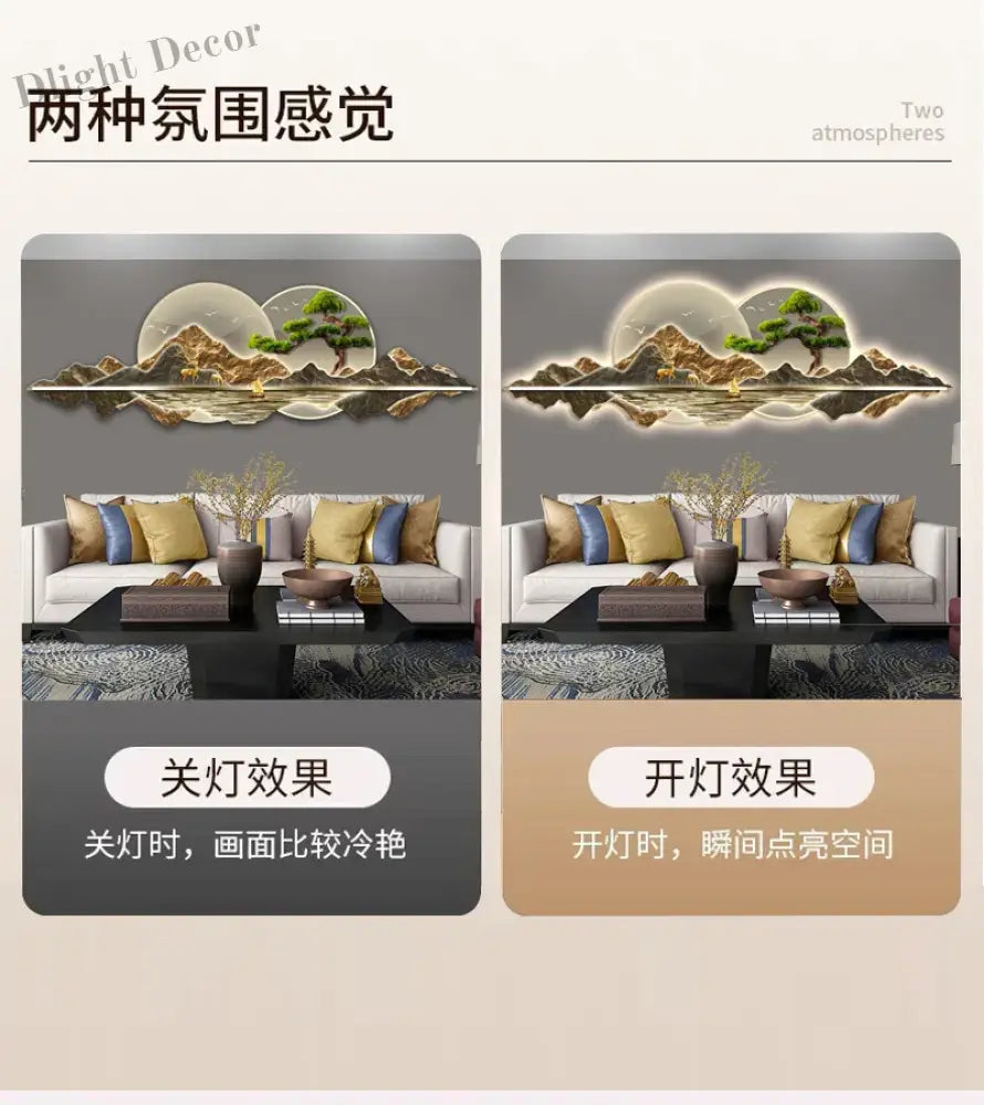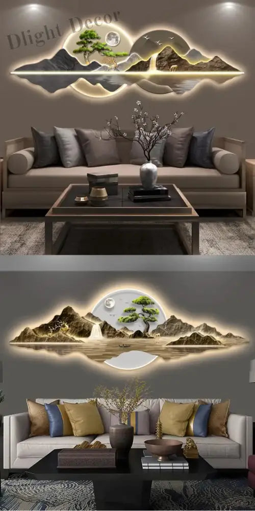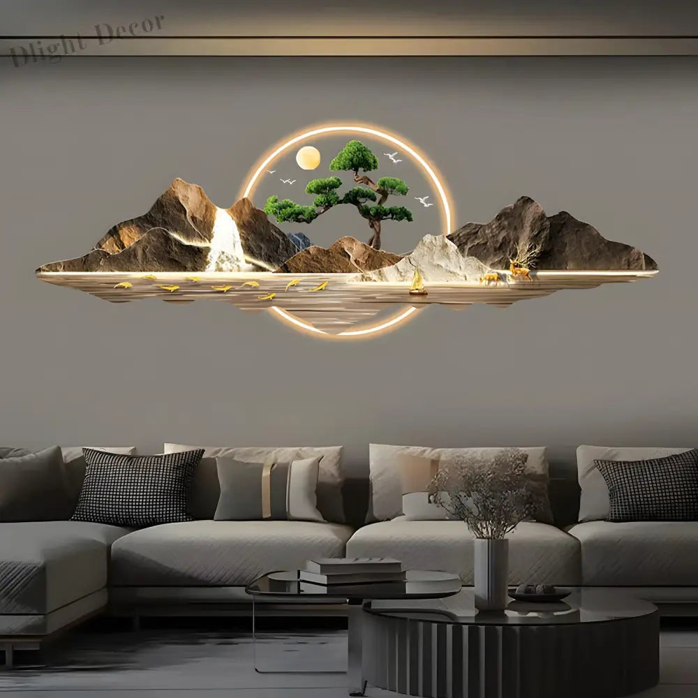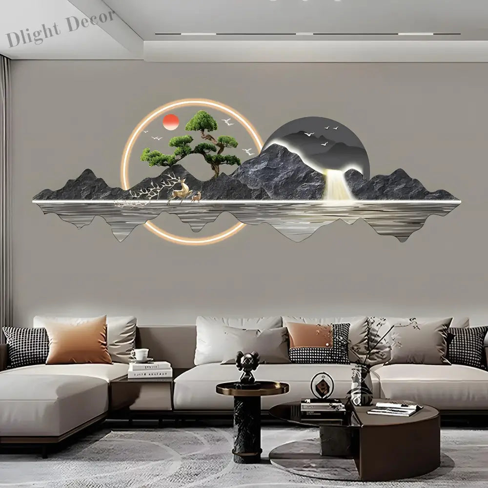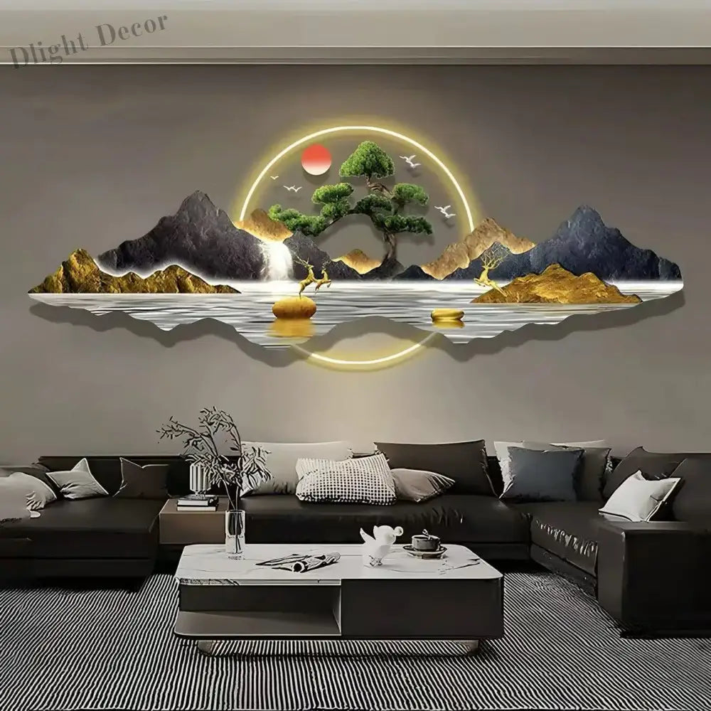 Illuminate your wall with sculptural elegance using the Dlight Decor acrylic carved LED mural — a contemporary lighted painting designed for living rooms, offices, or studio spaces. Inspired by mountain sunlight themes like Rizhao Jinshan, this piece combines soft lines and ambient LED lighting with a precision-carved acrylic panel. Its glow brings out depth and texture, creating a focal point that feels both modern and serene. Ideal for sofa backdrops or workspace ambiance, Dlight Decor lets your wall tell a story in light.