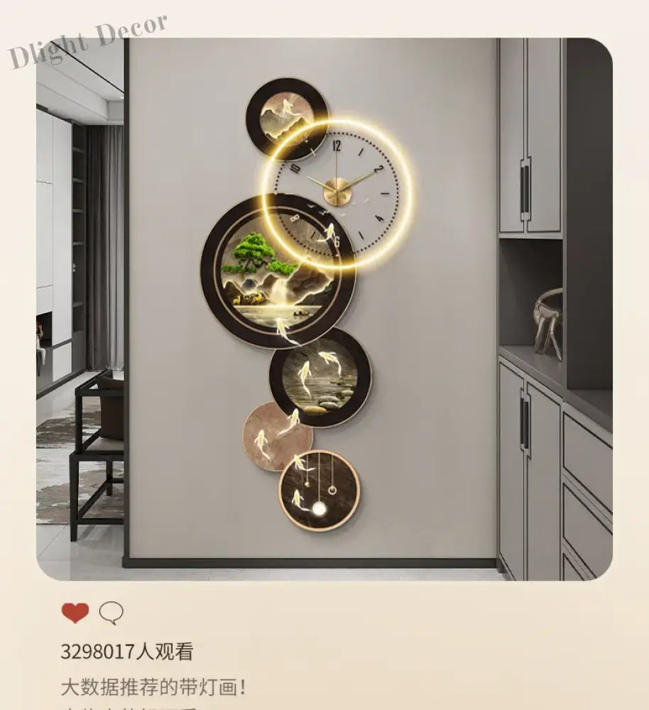 Invite symbolism and serenity into your space with the Dlight Decor nine fish mural wall light — a high-end decorative fusion of art, time, and gentle illumination. Designed to reflect prosperity and flow, this piece features a subtle time display and up-down LED lighting embedded in a serene artistic layout. Ideal for entryways, living rooms, or corridor walls, the wood-acrylic composition brings together texture and form with a clean, modern glow. With its remote-controlled dimming and sculptural finish, Dlight Decor lets your space breathe art and ambiance at once.