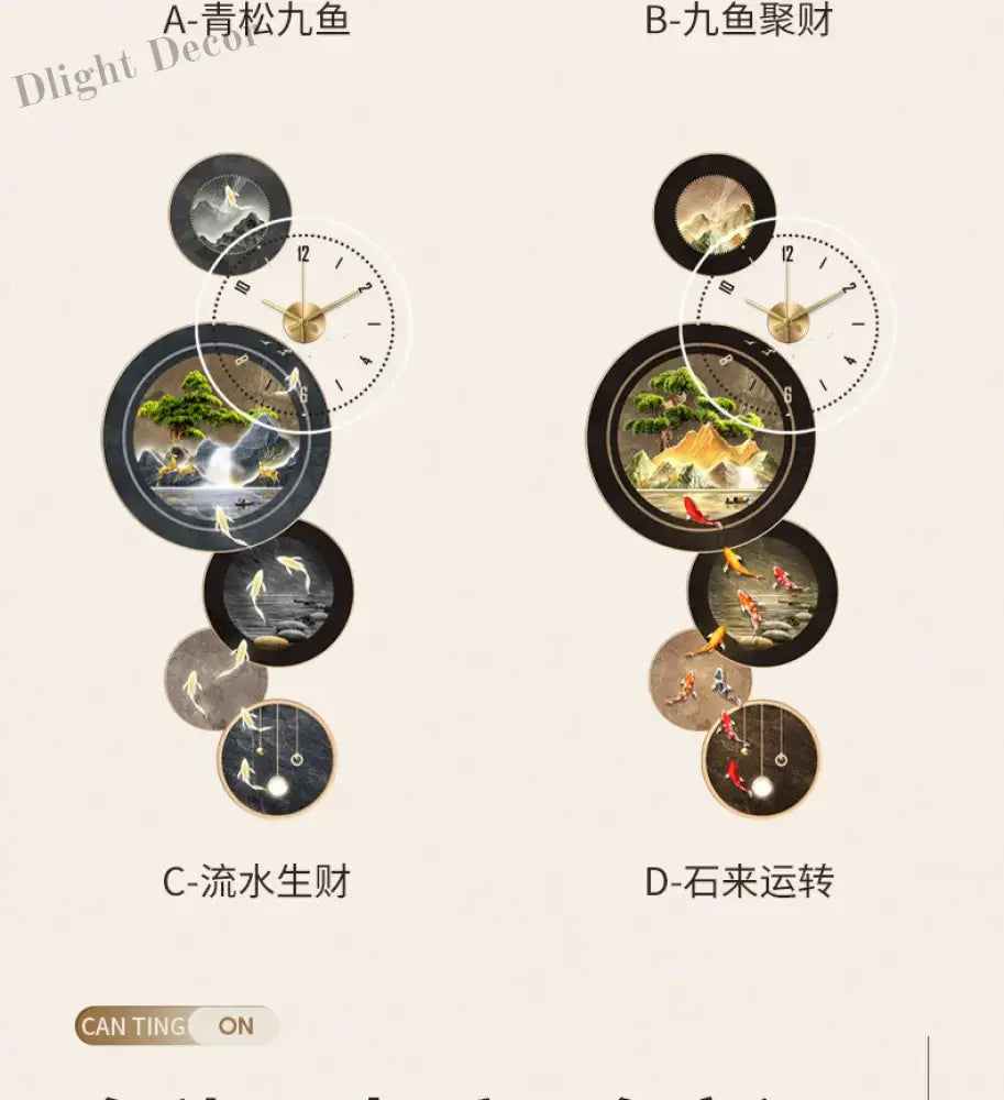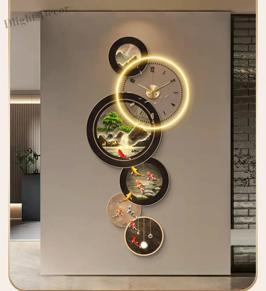 Dlight Decor Nine Fish Clock Wall Light Mural