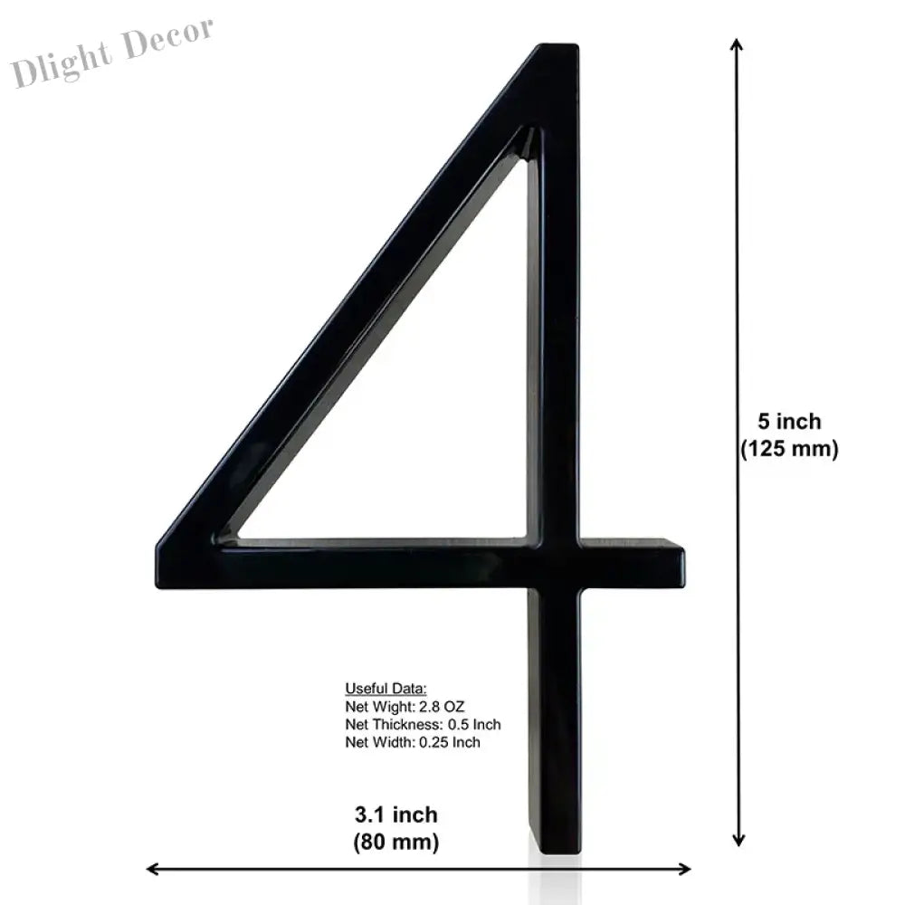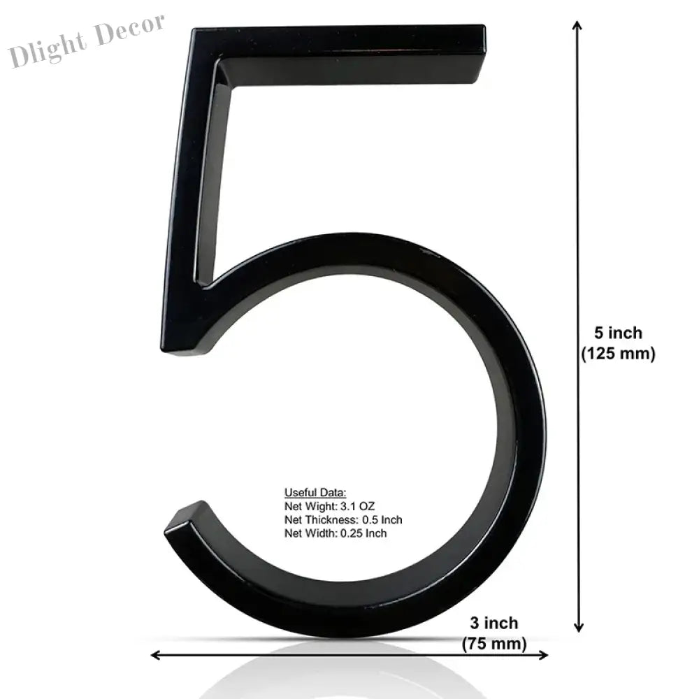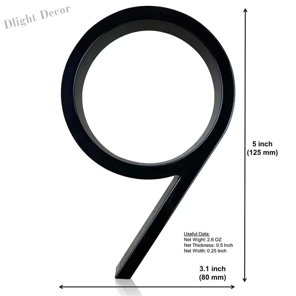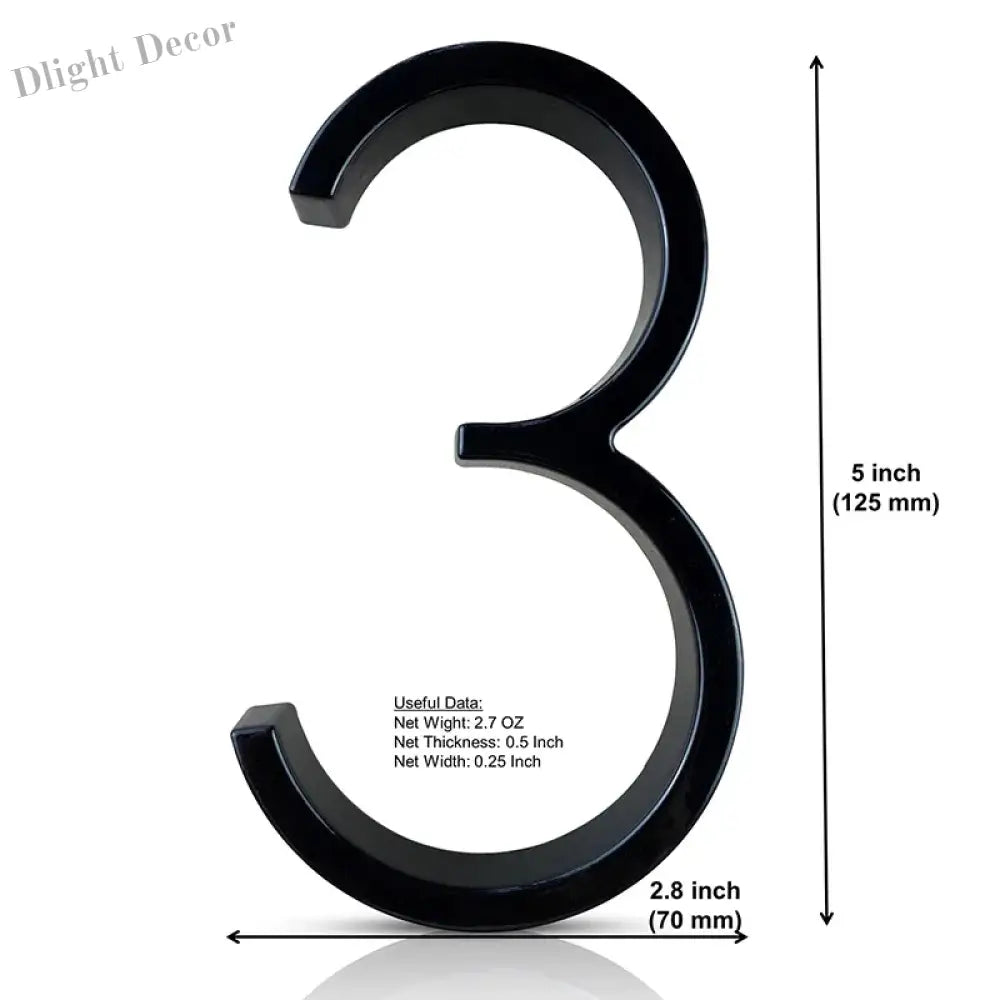 Upgrade your home's curb appeal with these stylish 125mm 3D Black Zinc House Numbers. Designed with Arabic numerals and a sleek black finish, these numbers can be installed in two ways: directly on the wall with glue or fixed on a holder for a floating effect. Made from durable zinc material, they offer a modern and polished look, perfect for house doorplates or business signage.