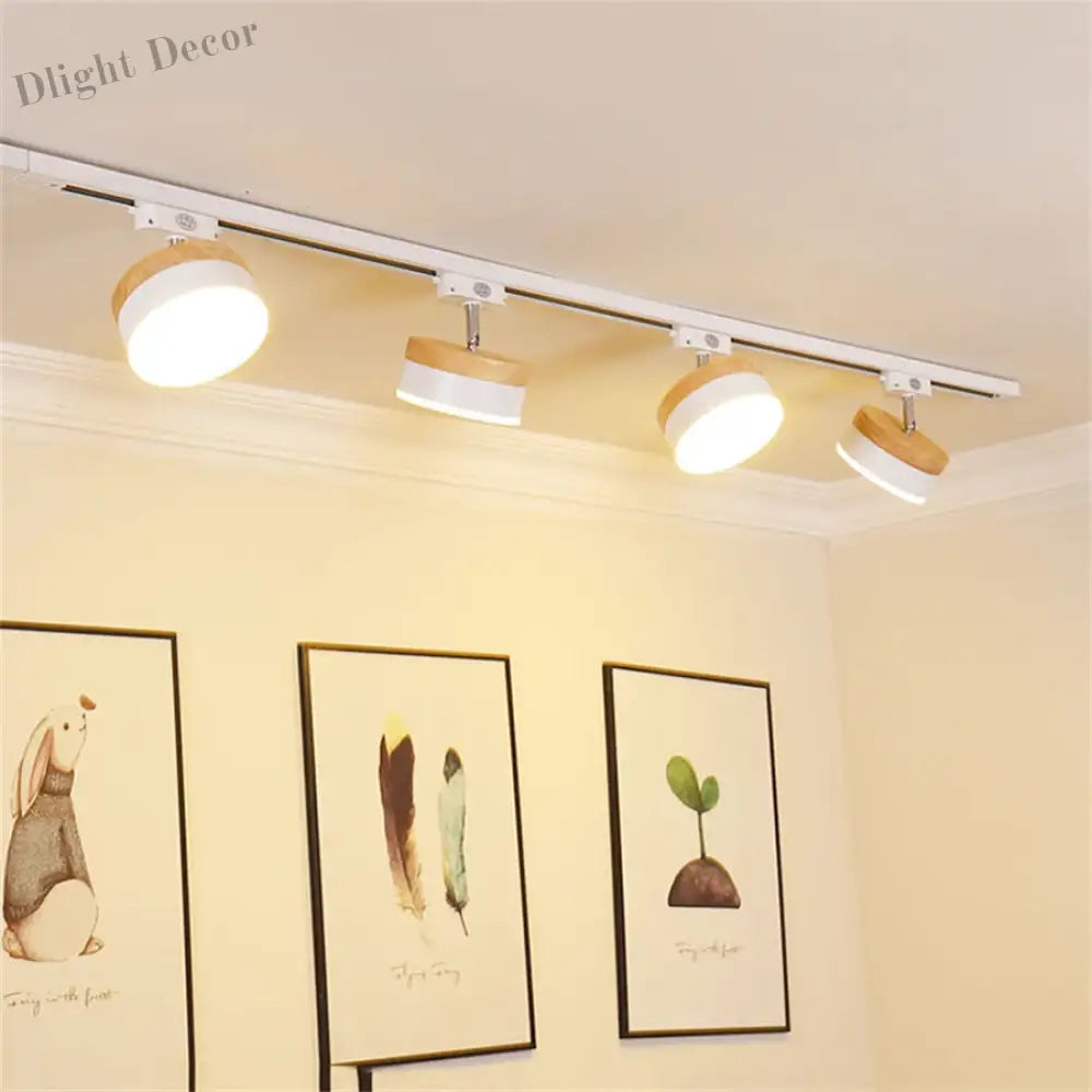 12W Nordic Wooden LED Track Light - COB Ceiling Spotlight for Home and Store Decor